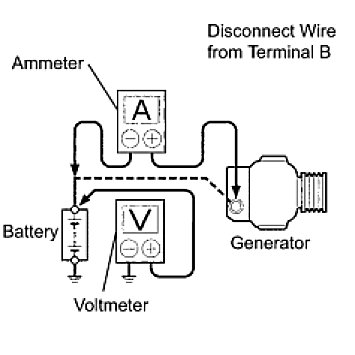 (1) Disconnect the wire from terminal B of the generator, then connect it to the negative (-) lead of the ammeter.