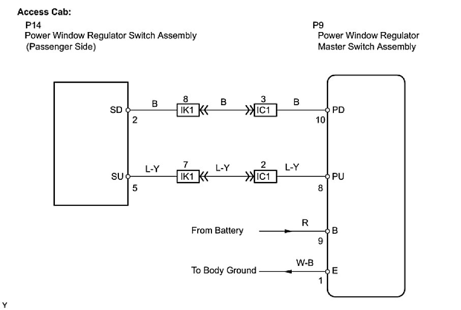 (b) Access cab: Inspect the power window regulator master switch assembly.