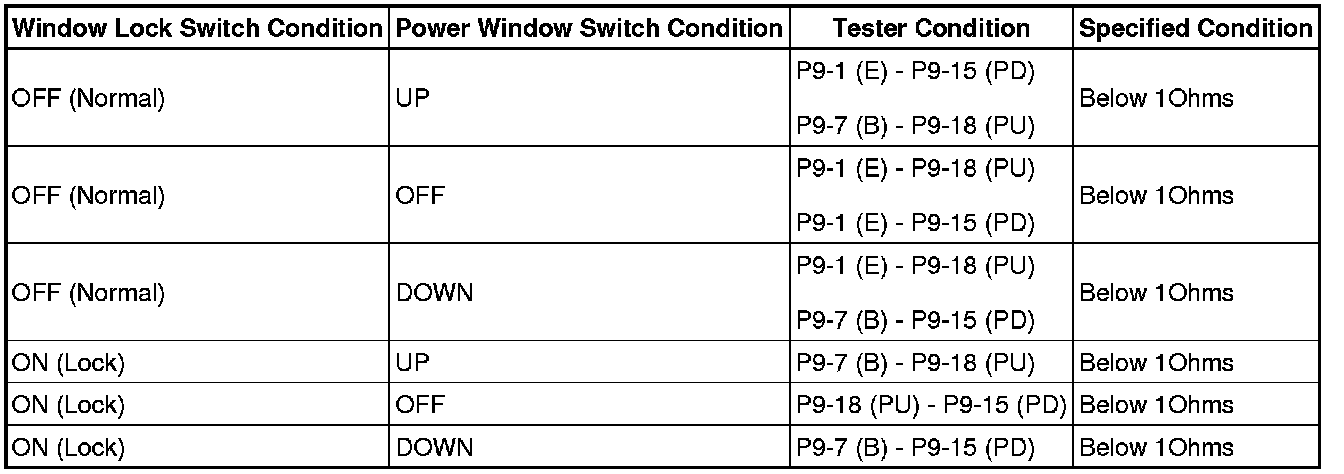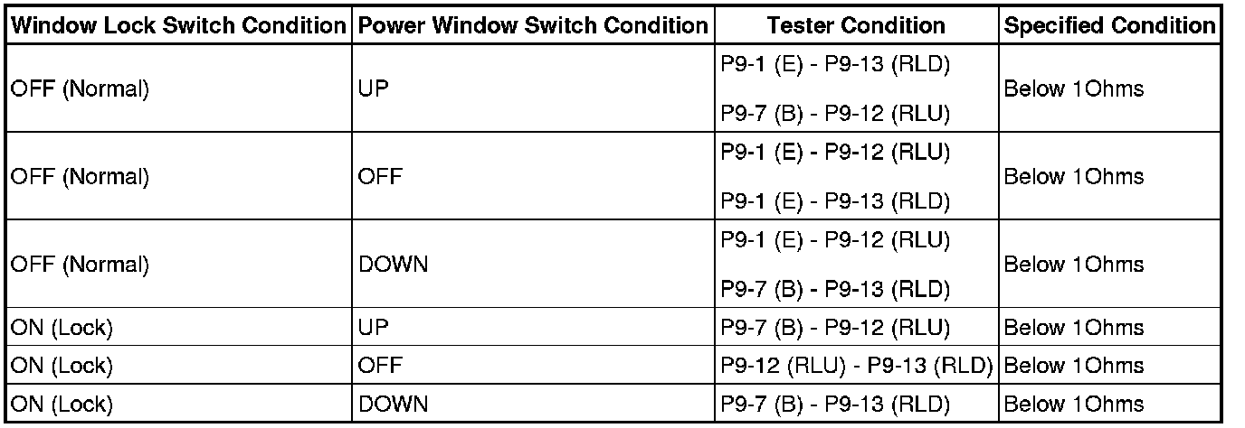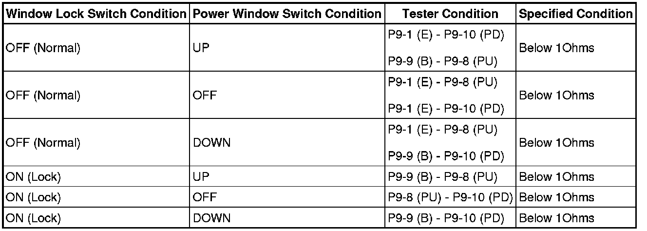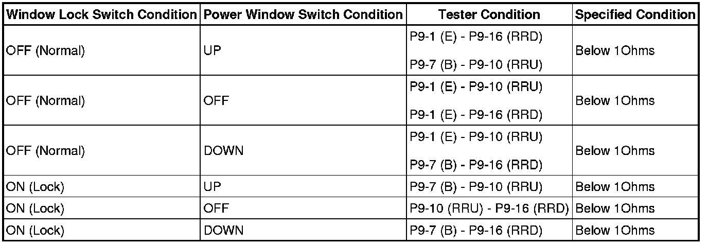 (a) Turn the window lock switch OFF and operate the master switches assembly passenger side and rear door side switches. Check that the remote UP/DOWN function operates normally.