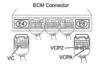When the VC circuit is short-circuited, the microprocessor in the ECM and sensors that are supplied power through the VC circuit are inactivated because the power is not supplied from the VC circuit. Under this condition, the system does not start up and the MIL does not illuminate even if the system malfunctions.