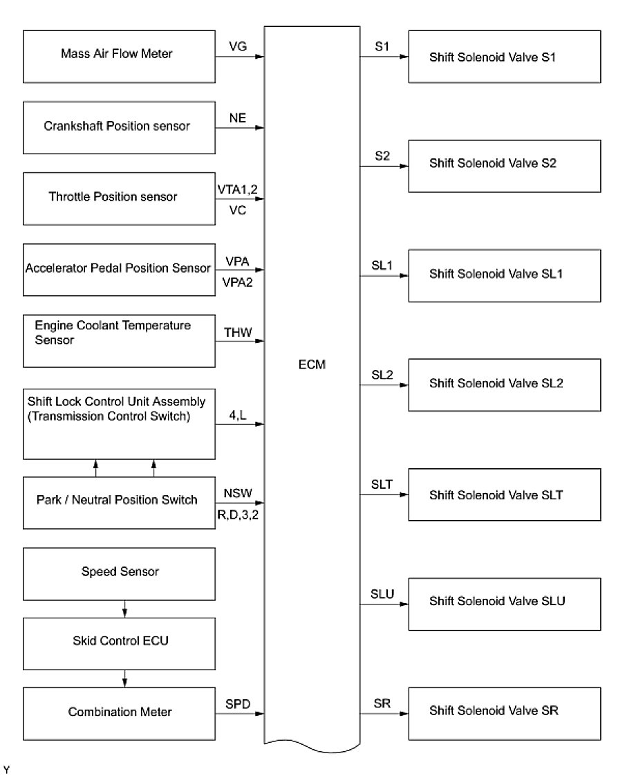 The configuration of the electronic control system in the A750E automatic transmission is as shown in the following chart.