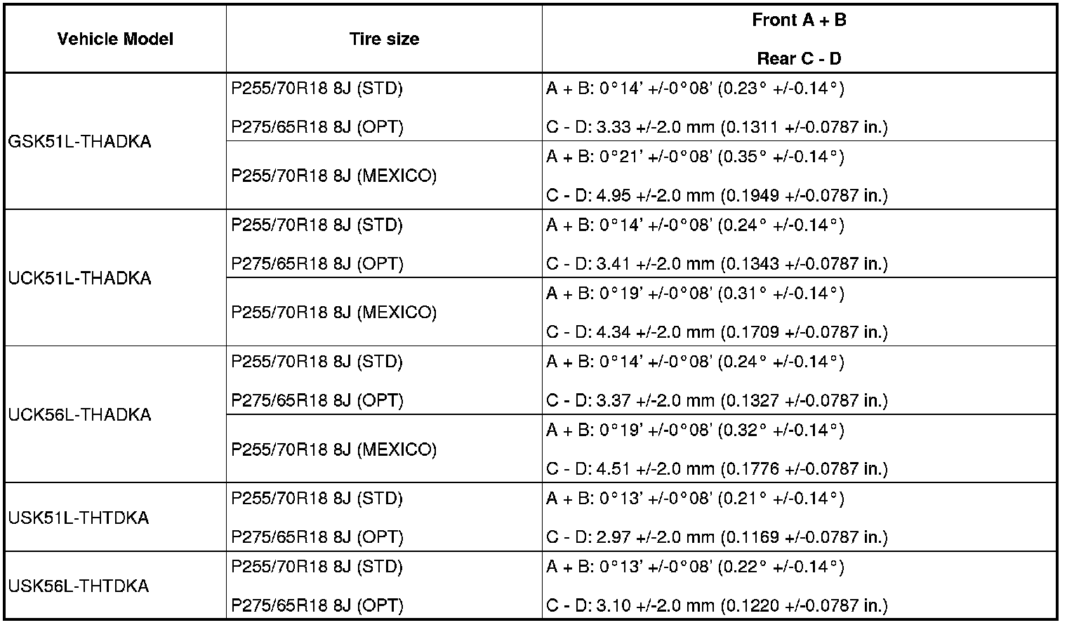 Standard toe-in (unloaded vehicle):