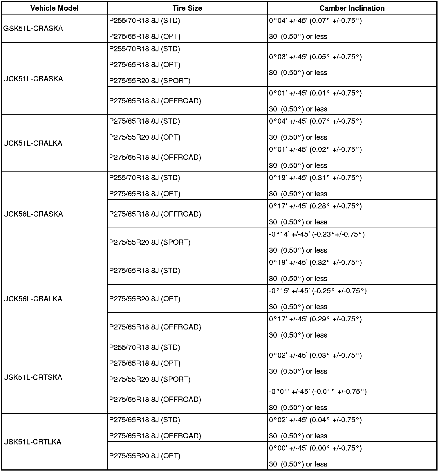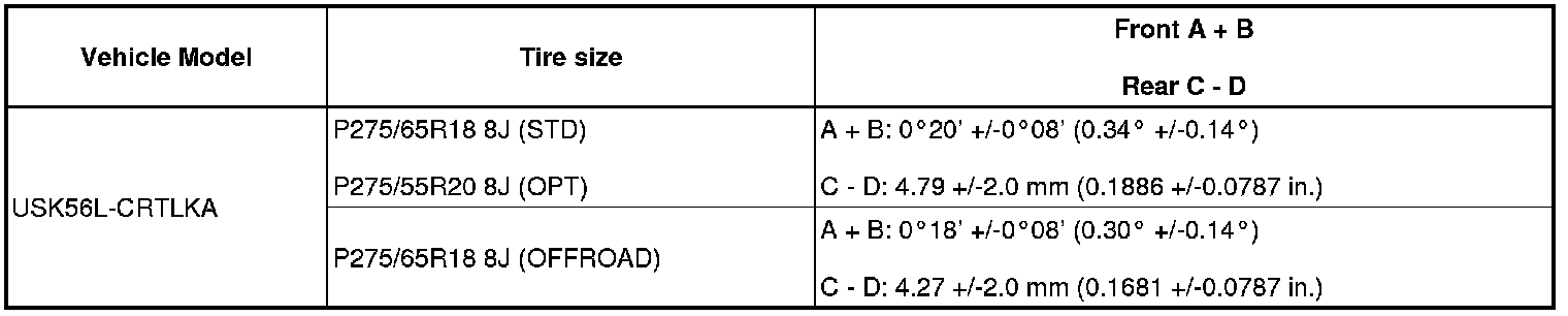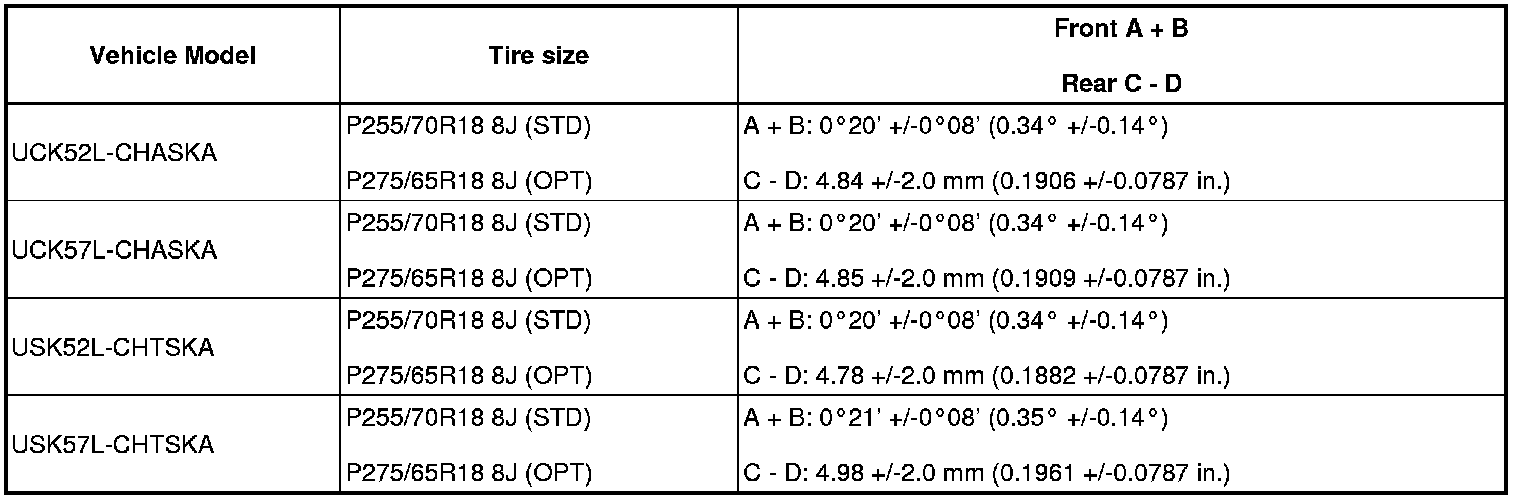 (1) Find the wheel alignment standard value applicable for the particular model.