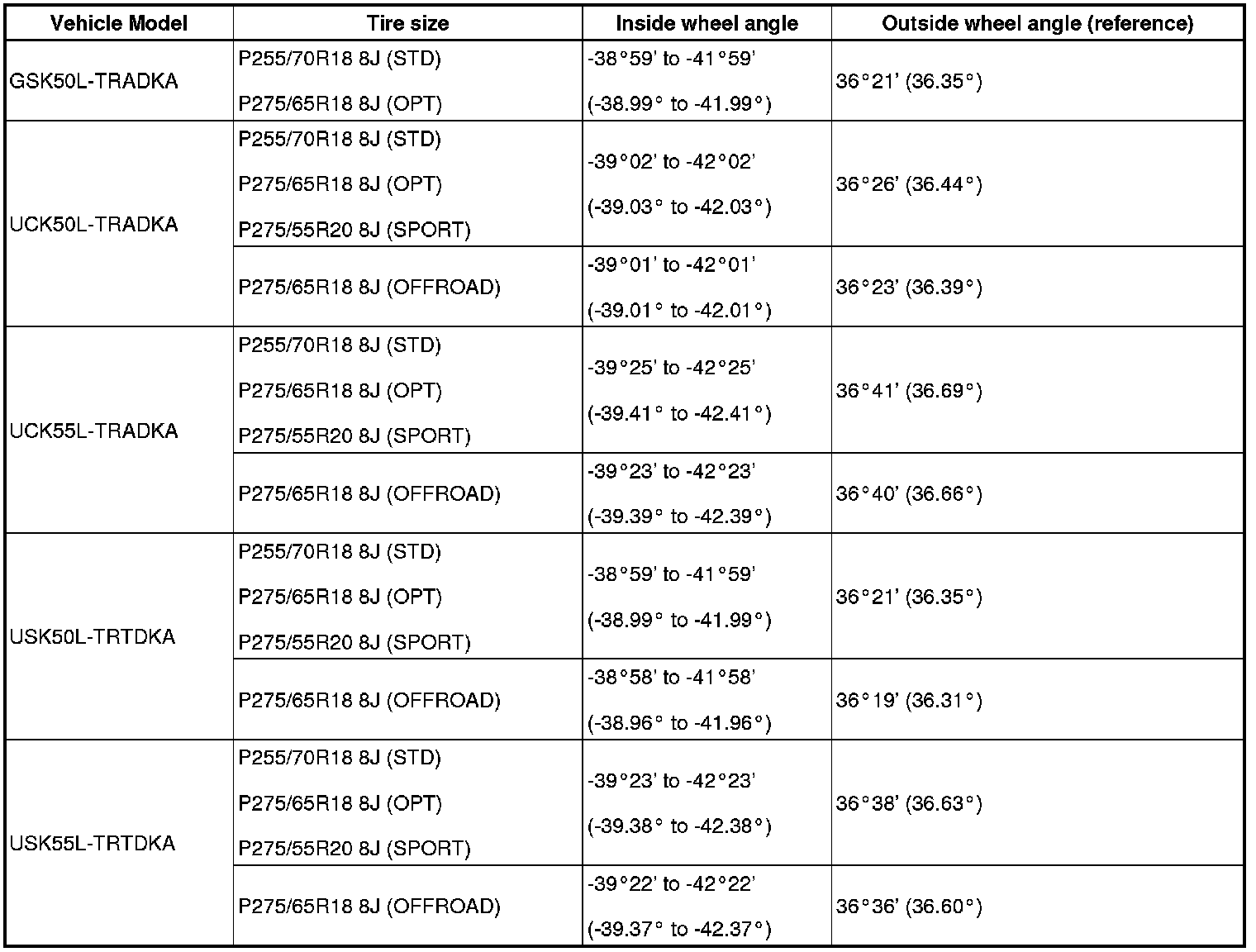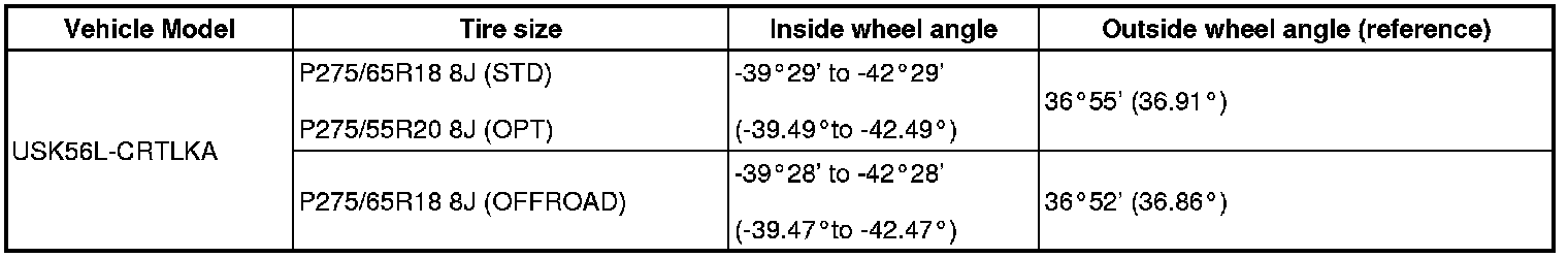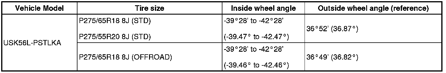 Standard wheel angle (unloaded vehicle):