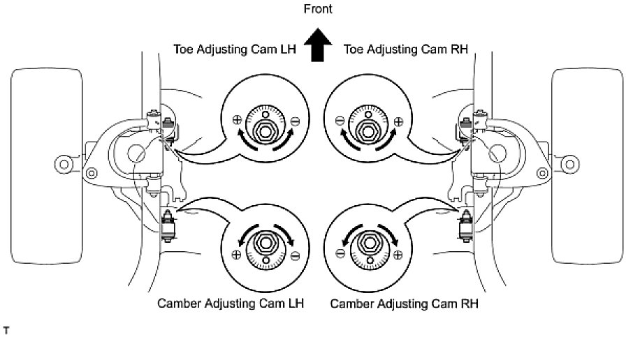 (b) Turn the toe adjusting cam and camber adjusting cam in both directions, and adjust the camber and caster to the center value.