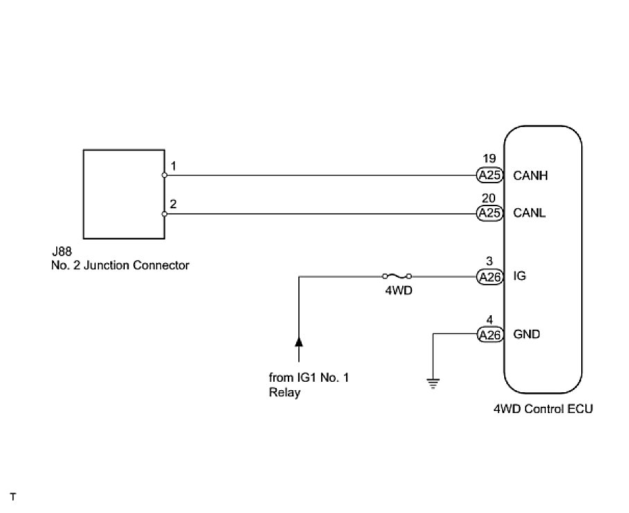2. CHECK FOR OPEN IN CAN BUS WIRE (4WD CONTROL ECU BRANCH WIRE)