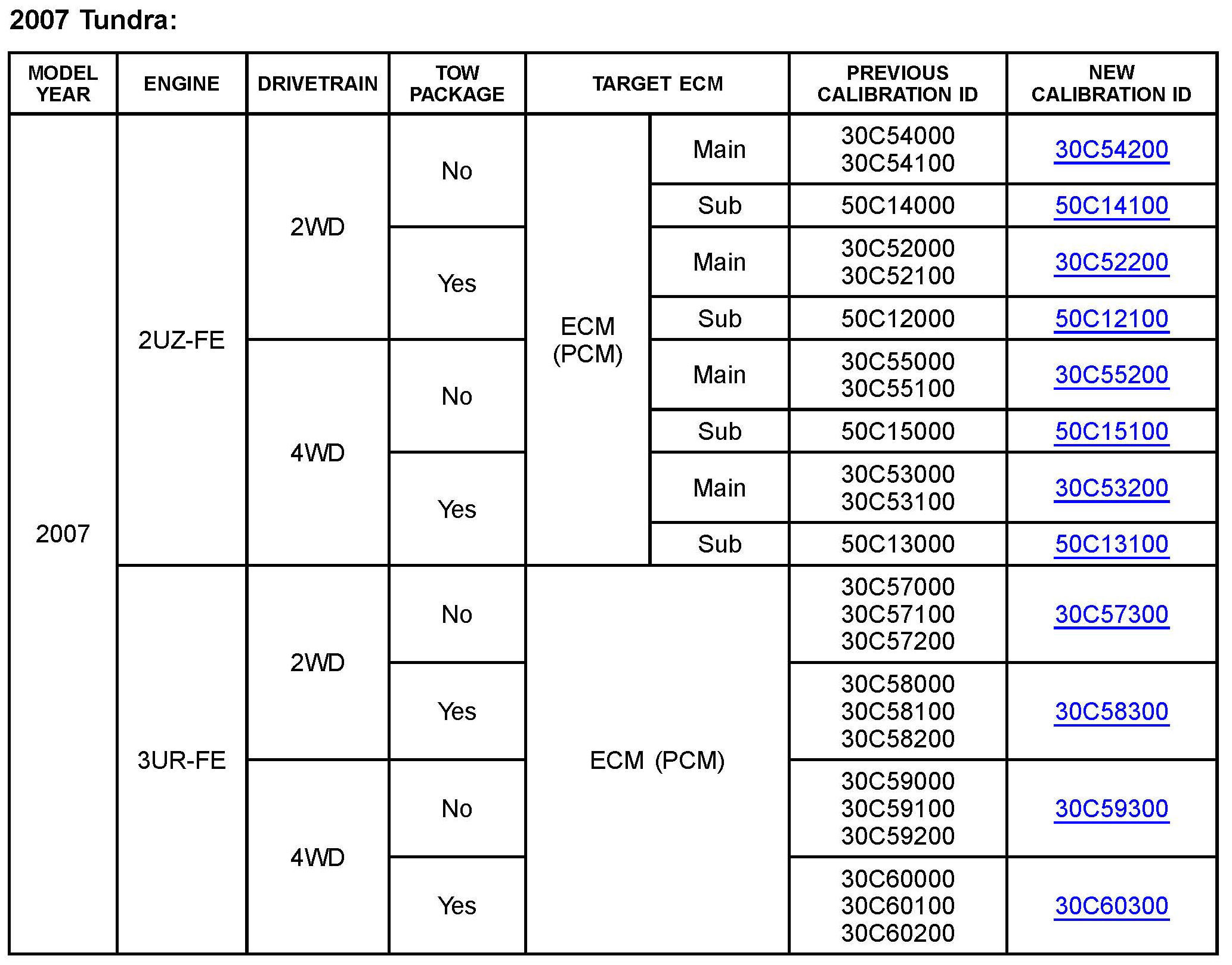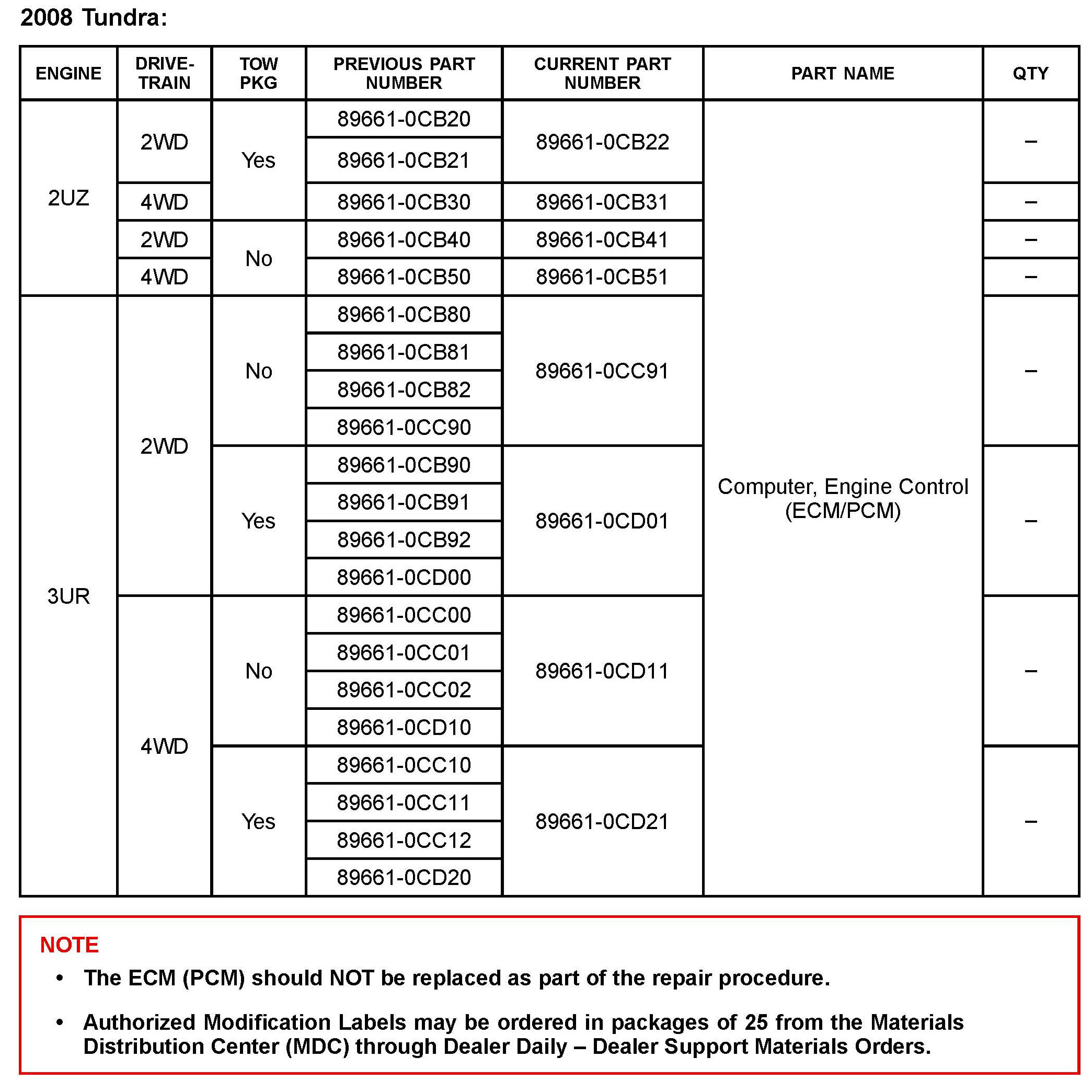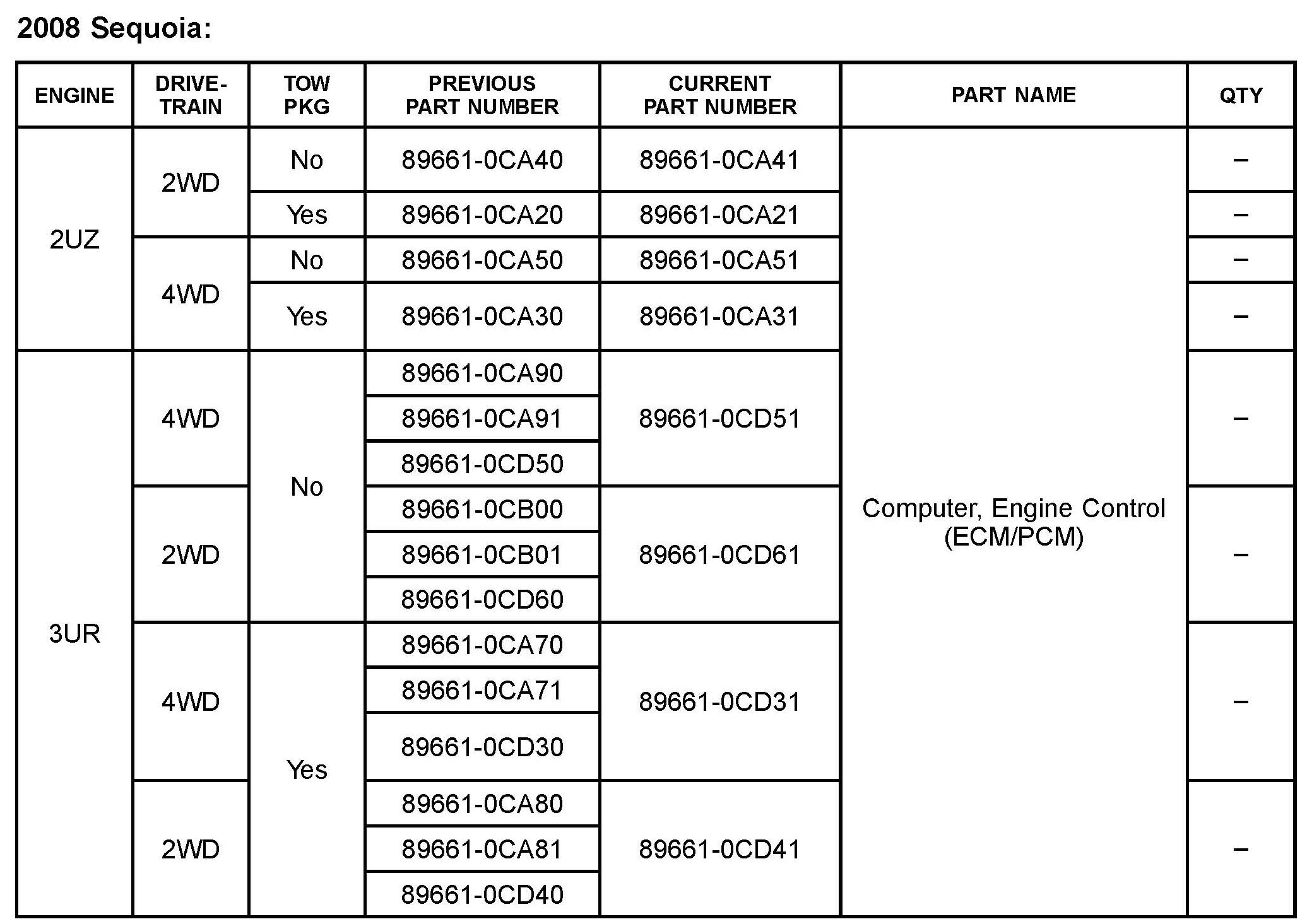 Some 2008 model year Sequoia and 2007 - 2008 model year Tundra vehicles may exhibit reduced cold-start heater warm-up performance in cold conditions. A newly designed Engine Control Module/ECM (SAE term: Powertrain Control Module/PCM) logic is available to address this condition. Use the following repair procedure to recalibrate the ECM (PCM).