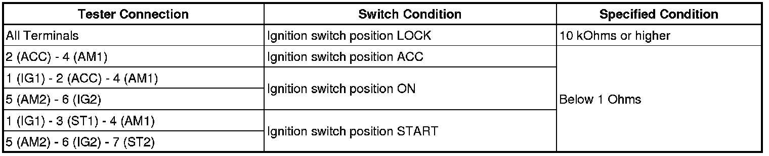 9. INSPECT IGNITION SWITCH ASSEMBLY