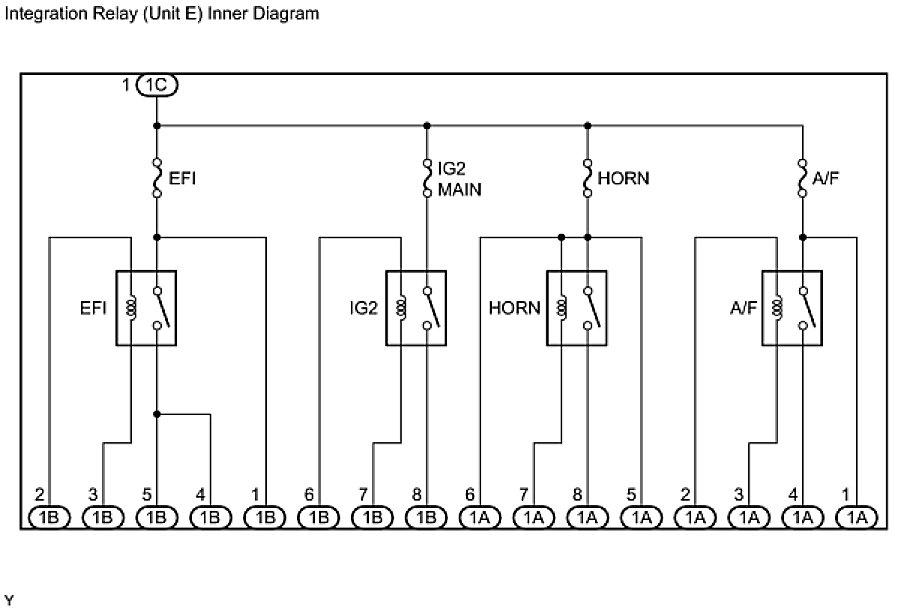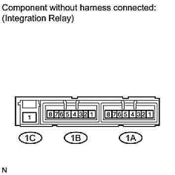 - The internal circuit of the integration relay is as shown in the illustration below. Inspect the integration relay using the following procedures.