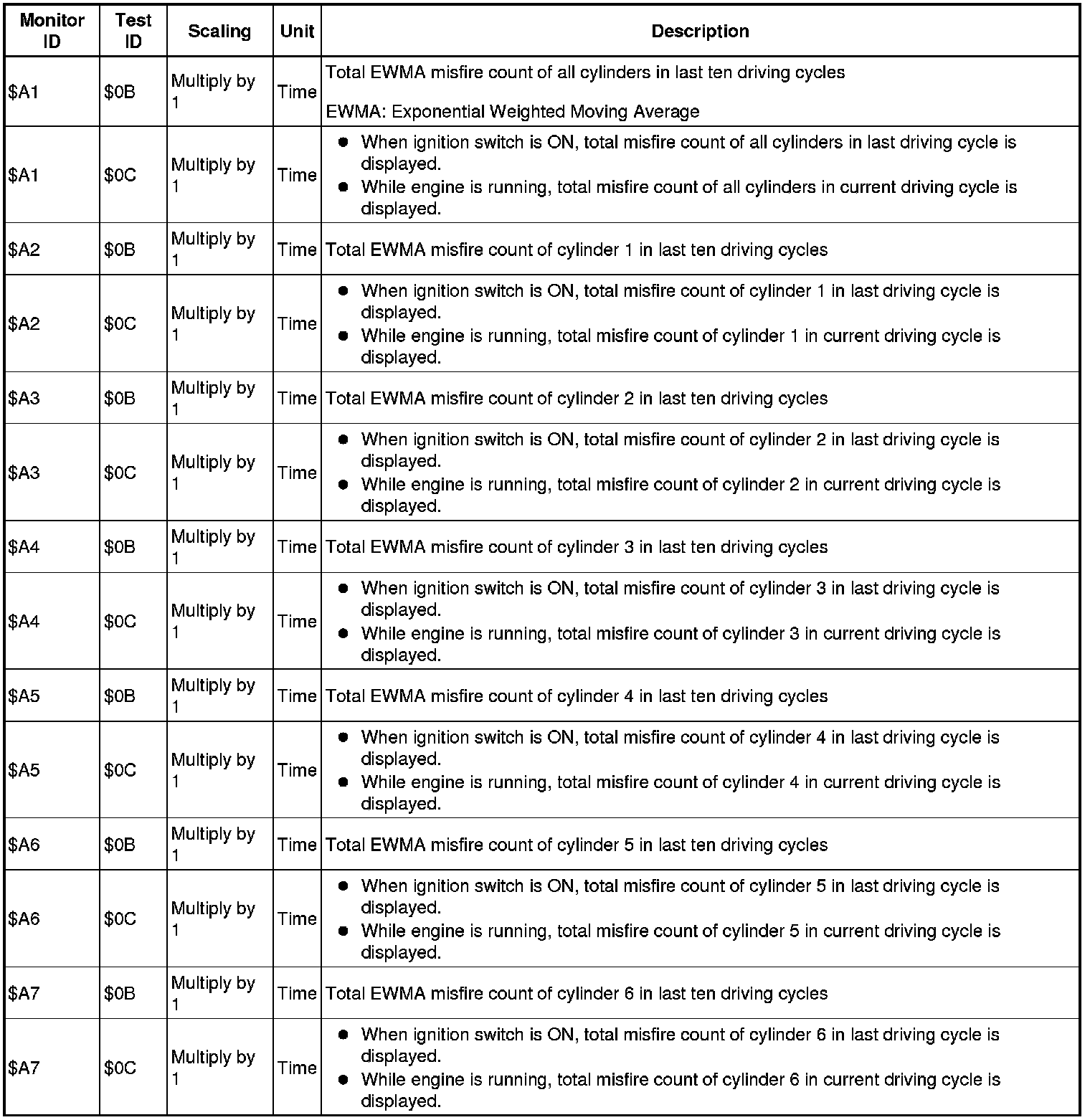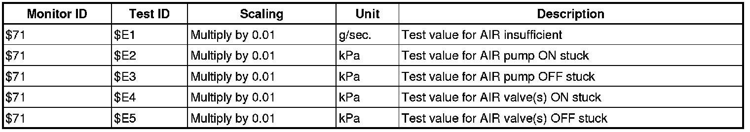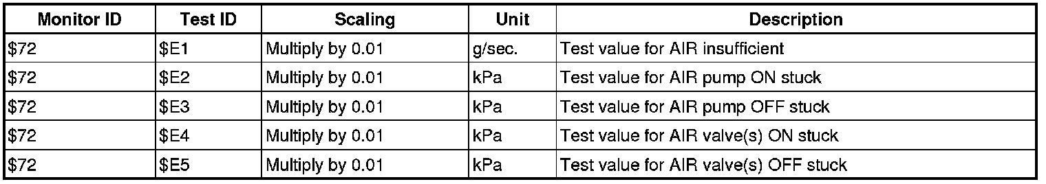 If you use a generic scan tool, multiply the value by the scaling value listed below.