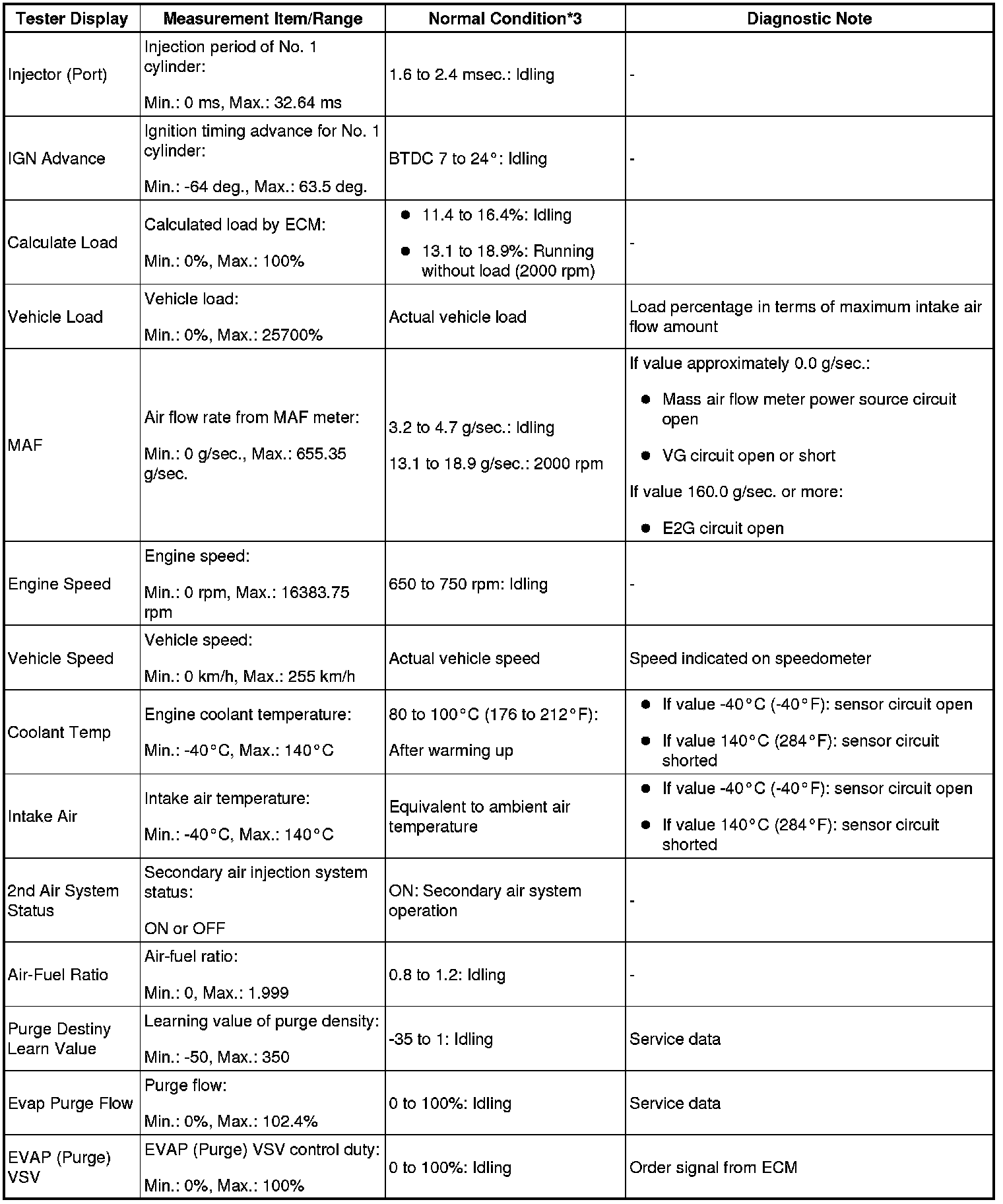 - *3: If no idling conditions are specified, the shift lever should be in the N or P position, and the A/C switch and all accessory switches should be OFF.