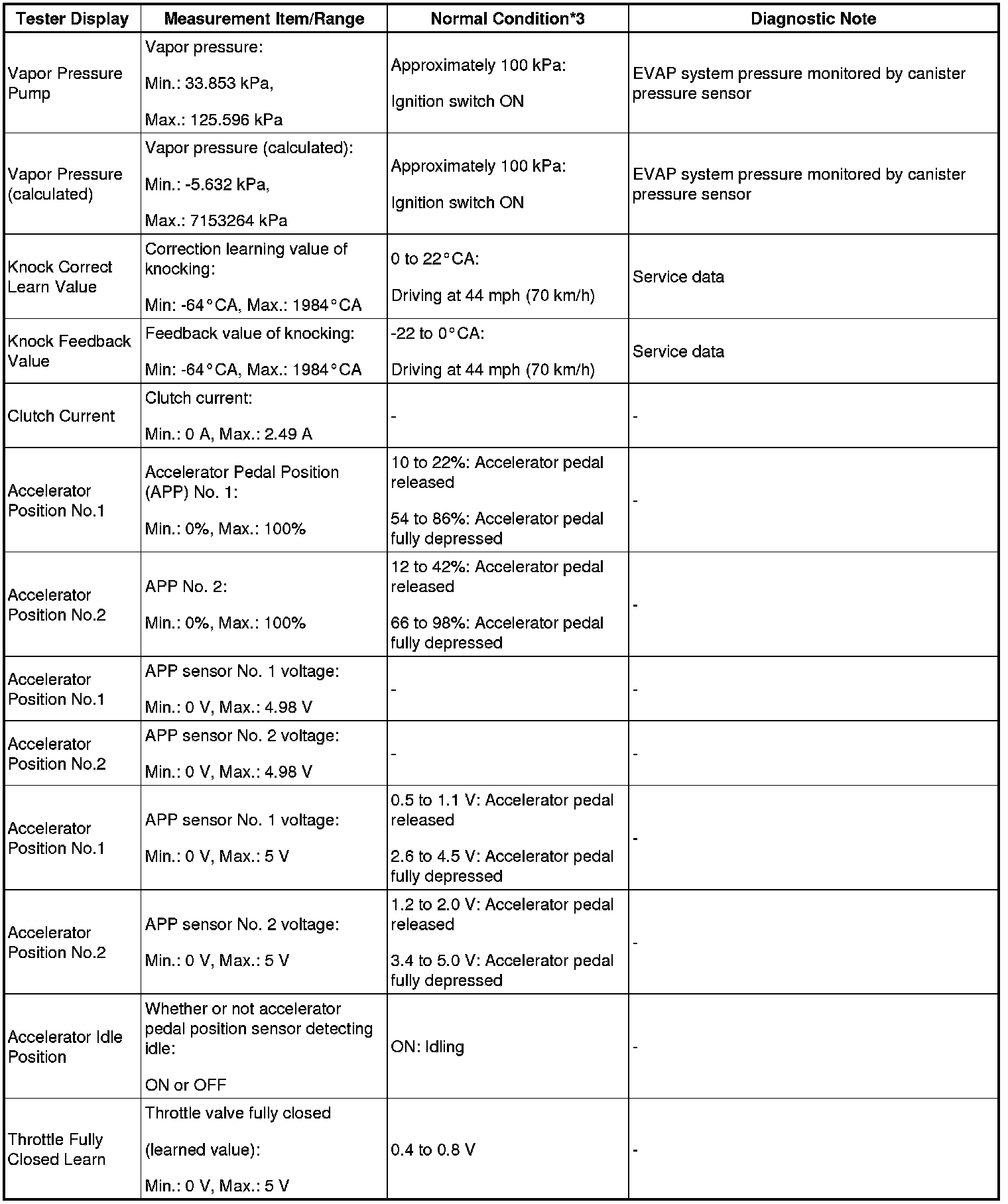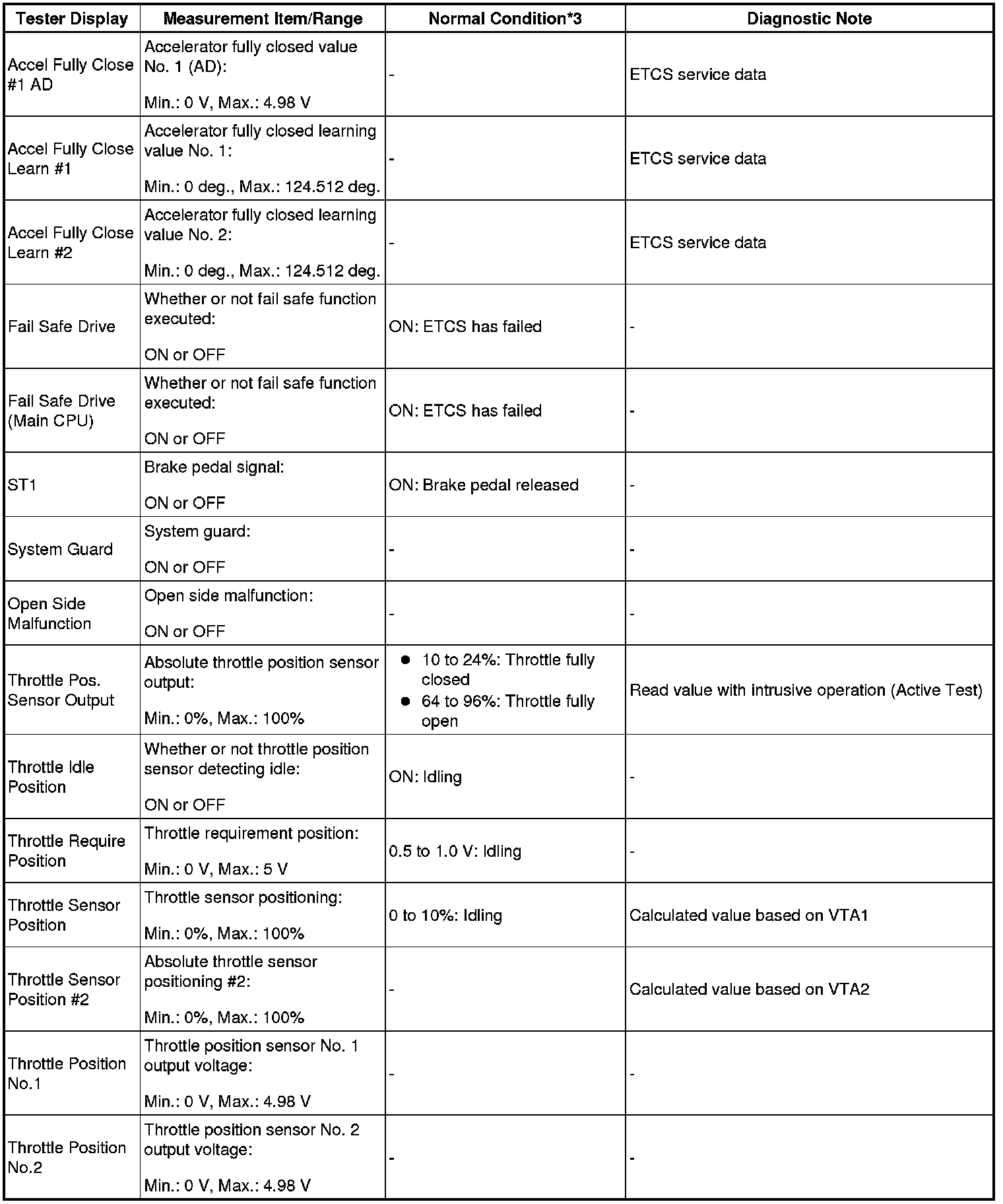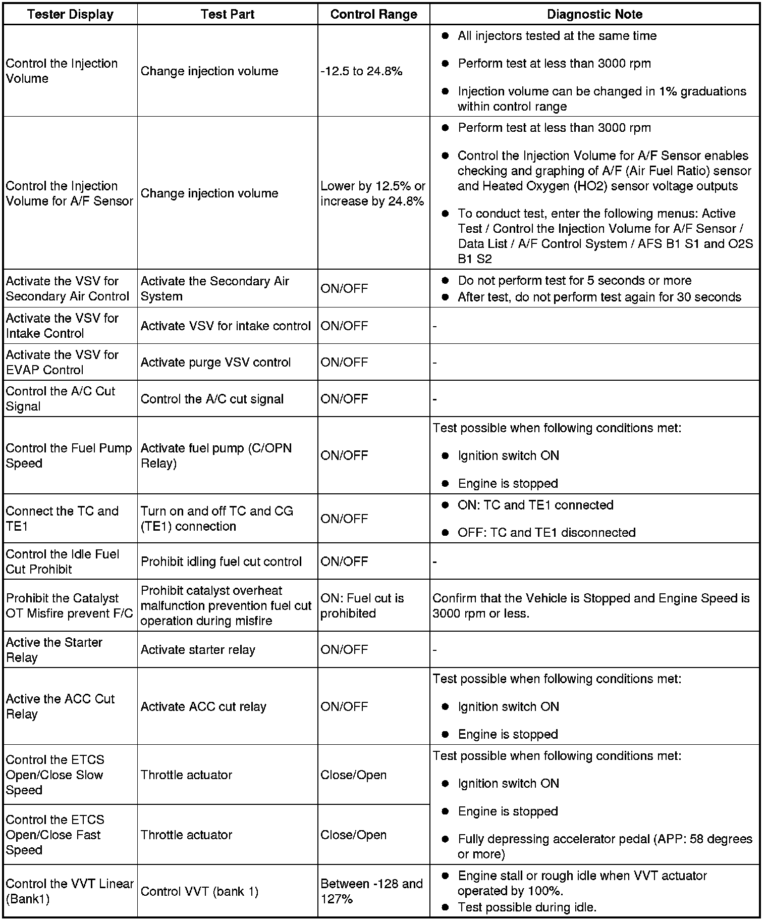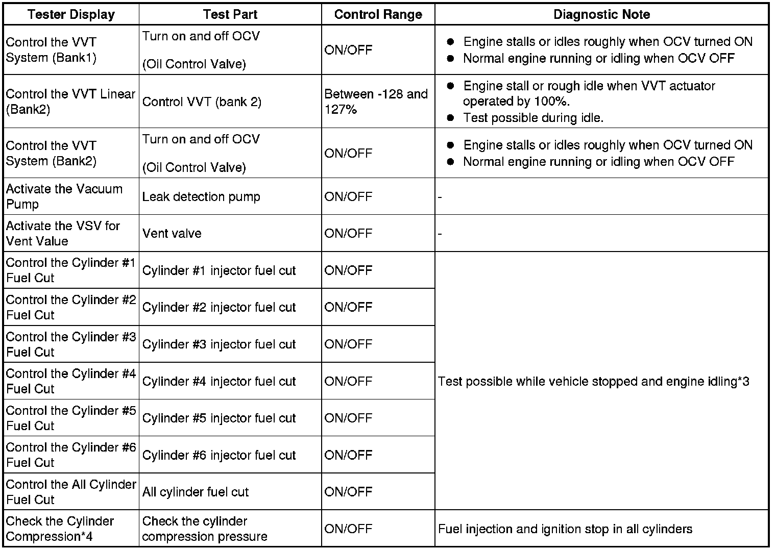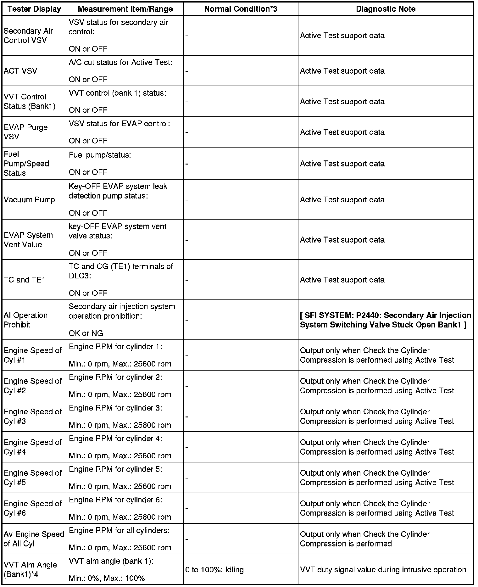 - *4: Data List values are only displayed when performing the following Active Tests: Control the VVT Linear (Bank1), Control the VVT Linear (Bank2), Control the VVT Exhaust Linear (Bank1) and Control the VVT Exhaust Linear (Bank2). For other Active Tests, the Data List value will be 0.