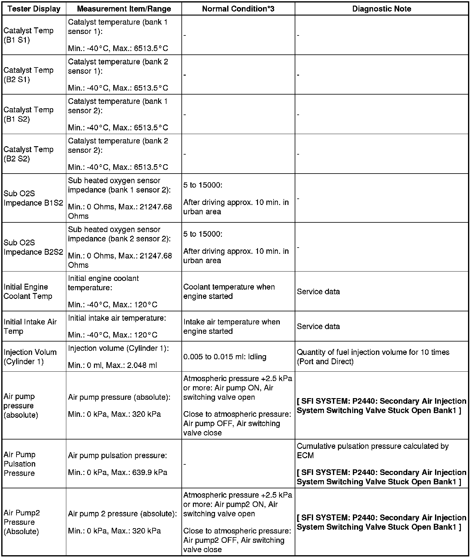 - *3: If the display of the Data List's CAT OT MF F/C item is Not Avl, perform this Active Test with the vehicle stopped and the engine idling.