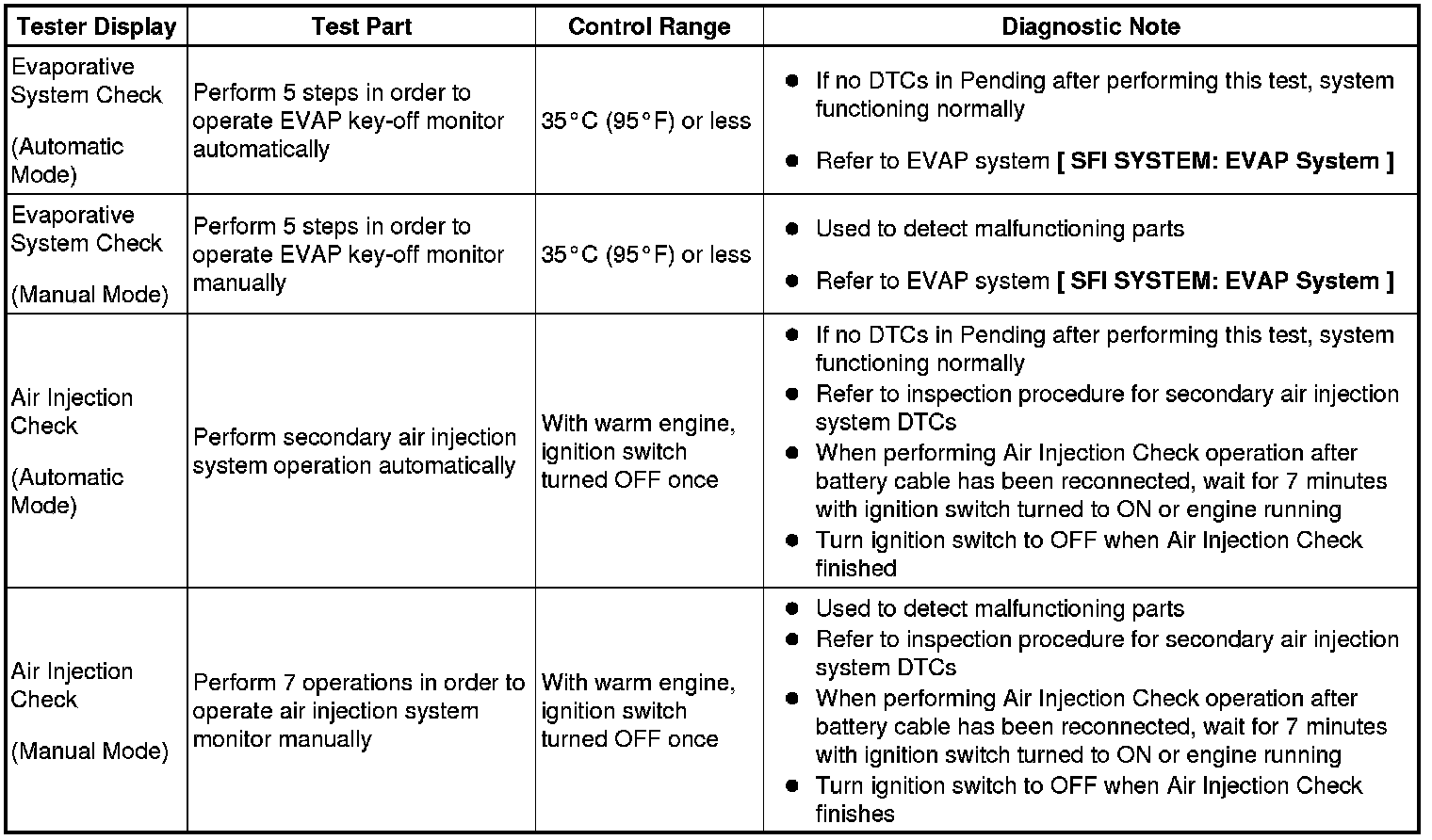 (e) Perform the System Check by referring to the table below.