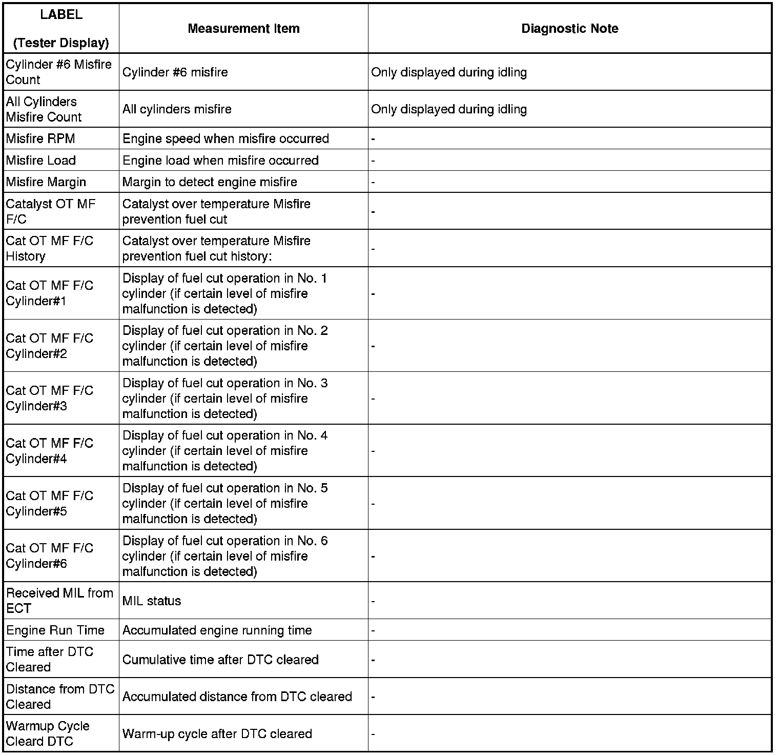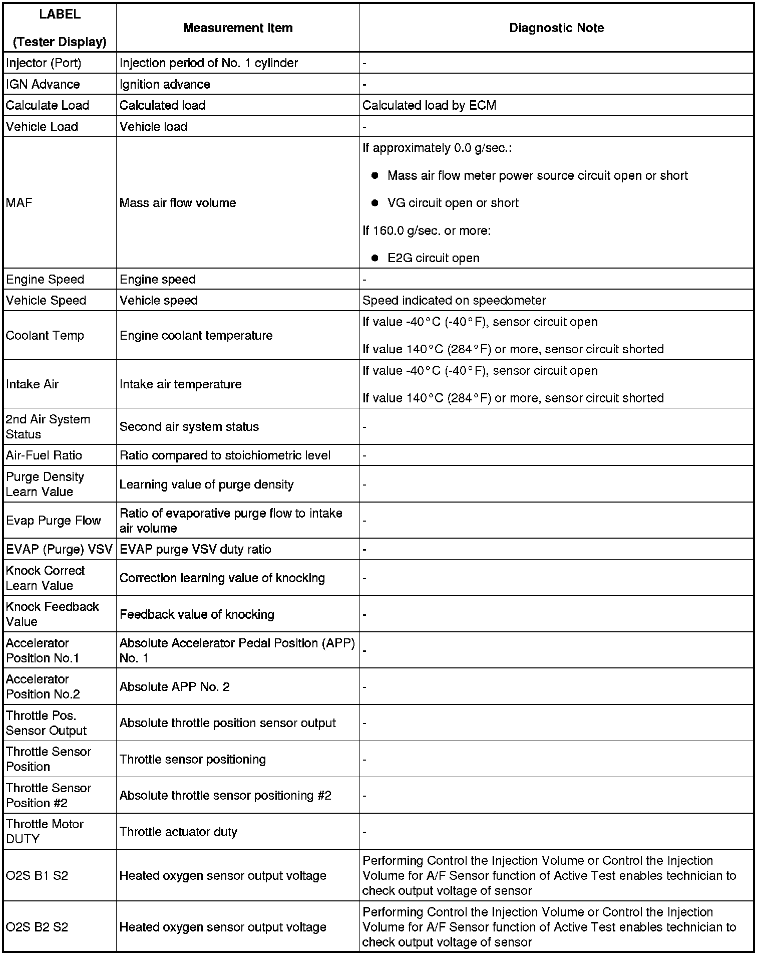 1GR-FE ENGINE CONTROL SYSTEM: SFI SYSTEM: FREEZE FRAME DATA