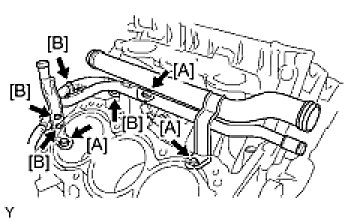(a) Install the 3 bolts [A] and water outlet pipe.