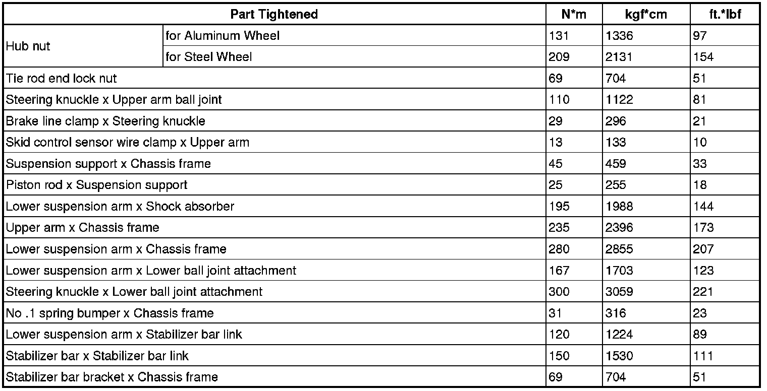 TORQUE SPECIFICATIONS