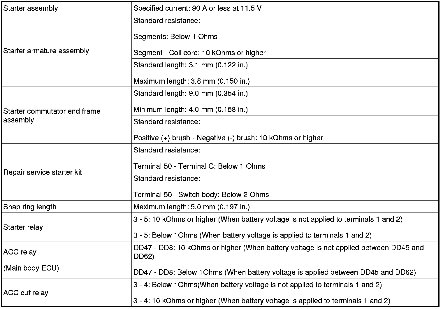 SERVICE SPECIFICATIONS: 1GR-FE STARTING: SERVICE DATA