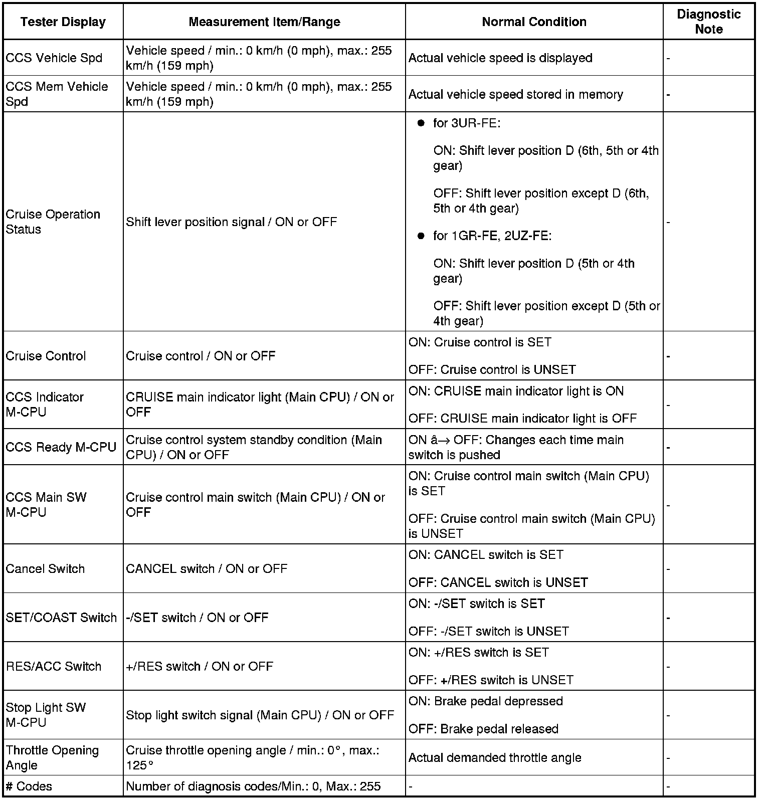 HINT: Using the Techstream to read the Data List allows values or states of switches, sensors, actuators and other items to be read without removing any parts. This non-intrusive inspection can be very useful because intermittent conditions or signals may be discovered before parts or wiring is disturbed. Reading the Data List information early in troubleshooting is one way to save diagnostic time.