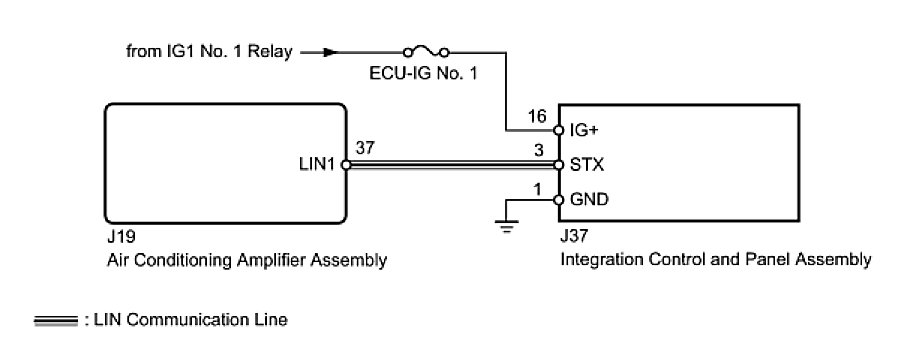 The LIN communication of the components related to the mirror heater occurs between the air conditioning amplifier (A/C ECU) and integration control and panel.