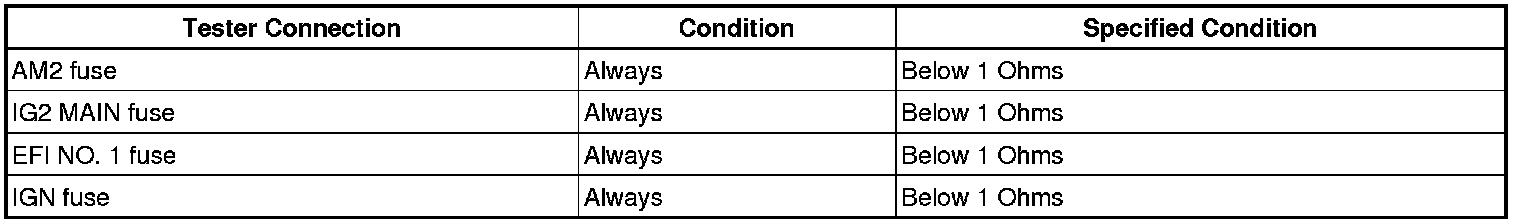 1. INSPECT FUSE (AM2, IG2 MAIN, EFI NO. 1 AND IGN)
