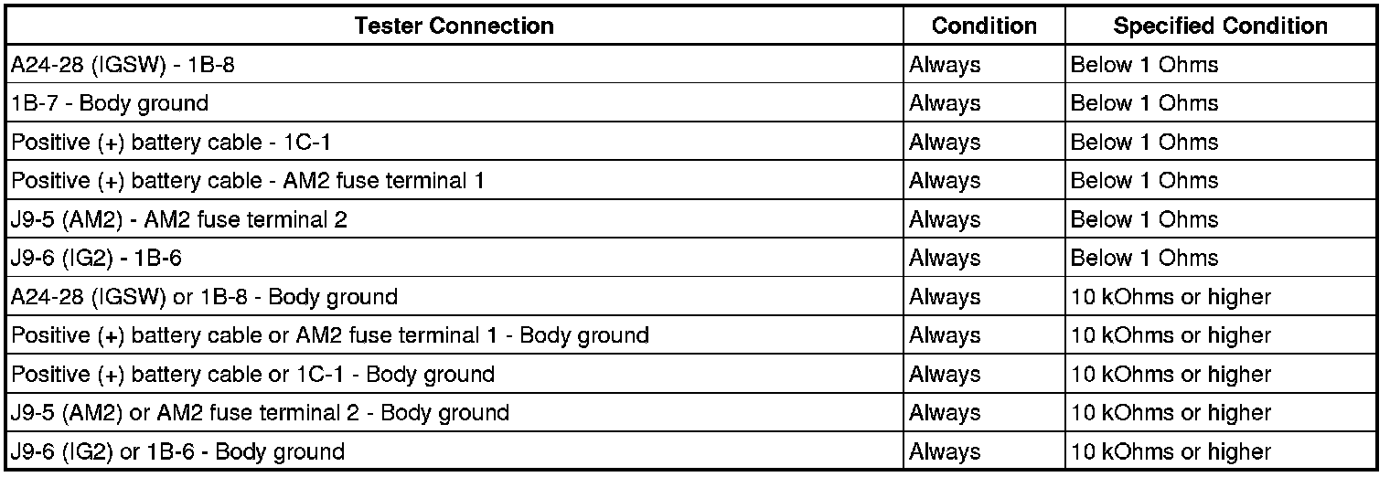 (a) Remove the AM2 fuse, IG2 MAIN fuse, EFI NO. 1 fuse and IGN fuse from the engine room relay block.
