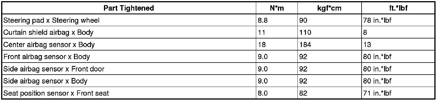 SERVICE SPECIFICATIONS: SUPPLEMENTAL RESTRAINT SYSTEM:
