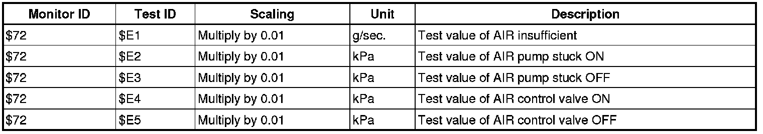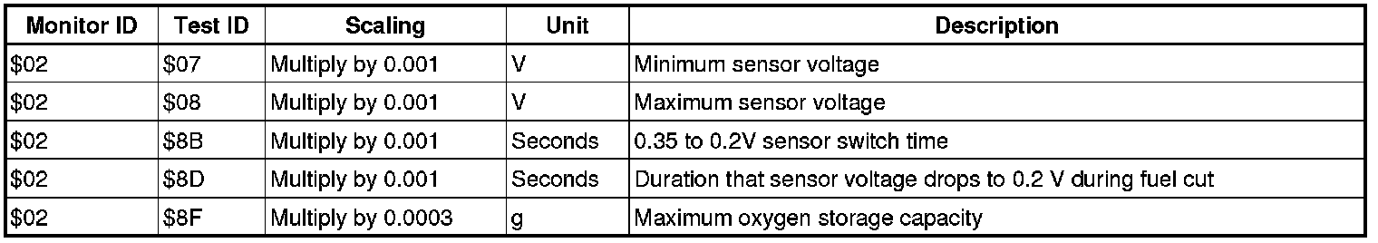 If you use a generic scan tool, multiply the test value by the scaling value listed below.