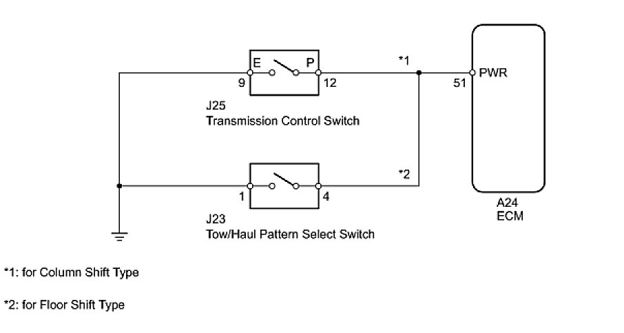 The ECM receives tow/haul pattern select switch information and performs the tow/haul control.