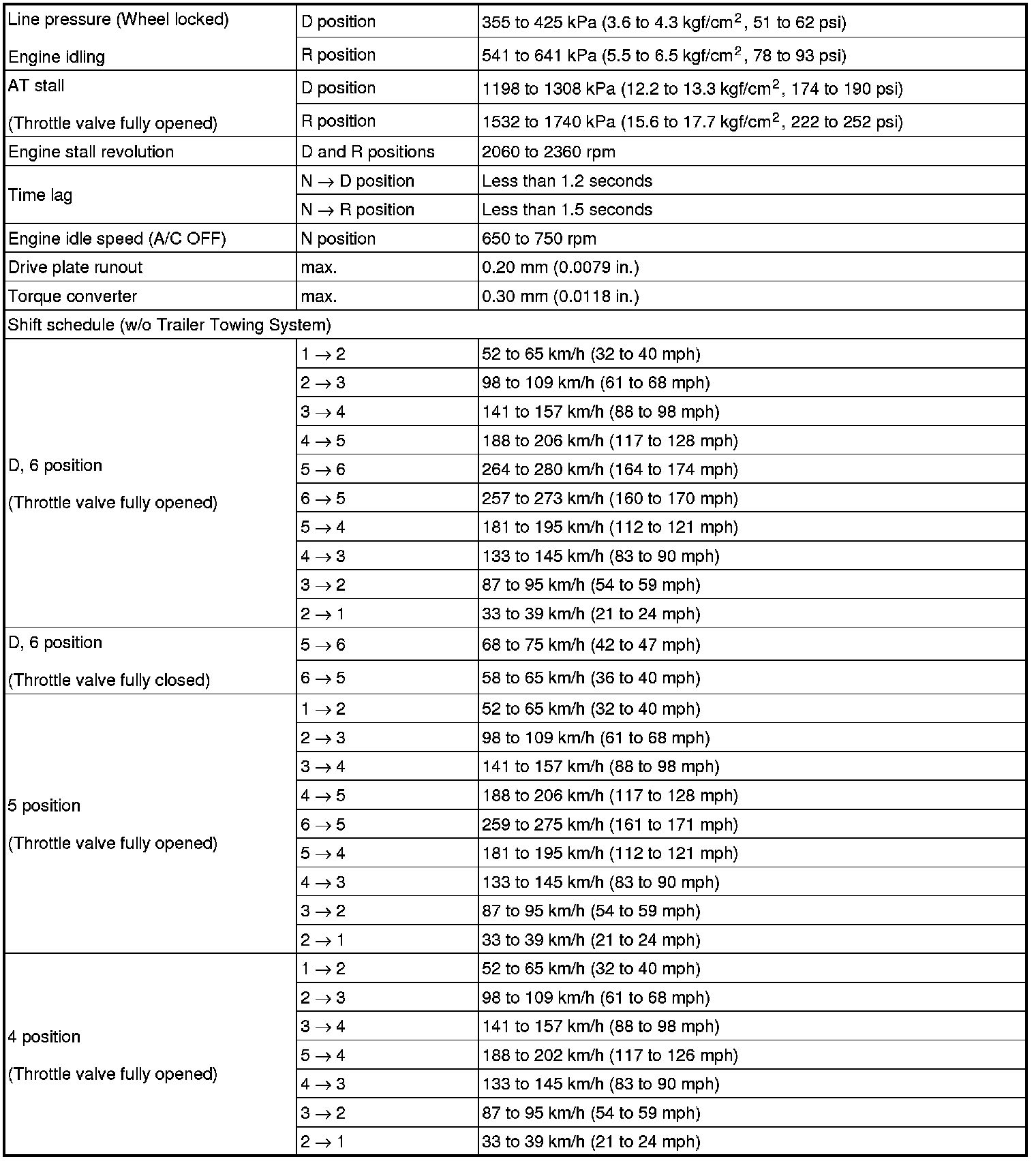 SERVICE SPECIFICATIONS: AB60E AUTOMATIC TRANSMISSION: SERVICE DATA