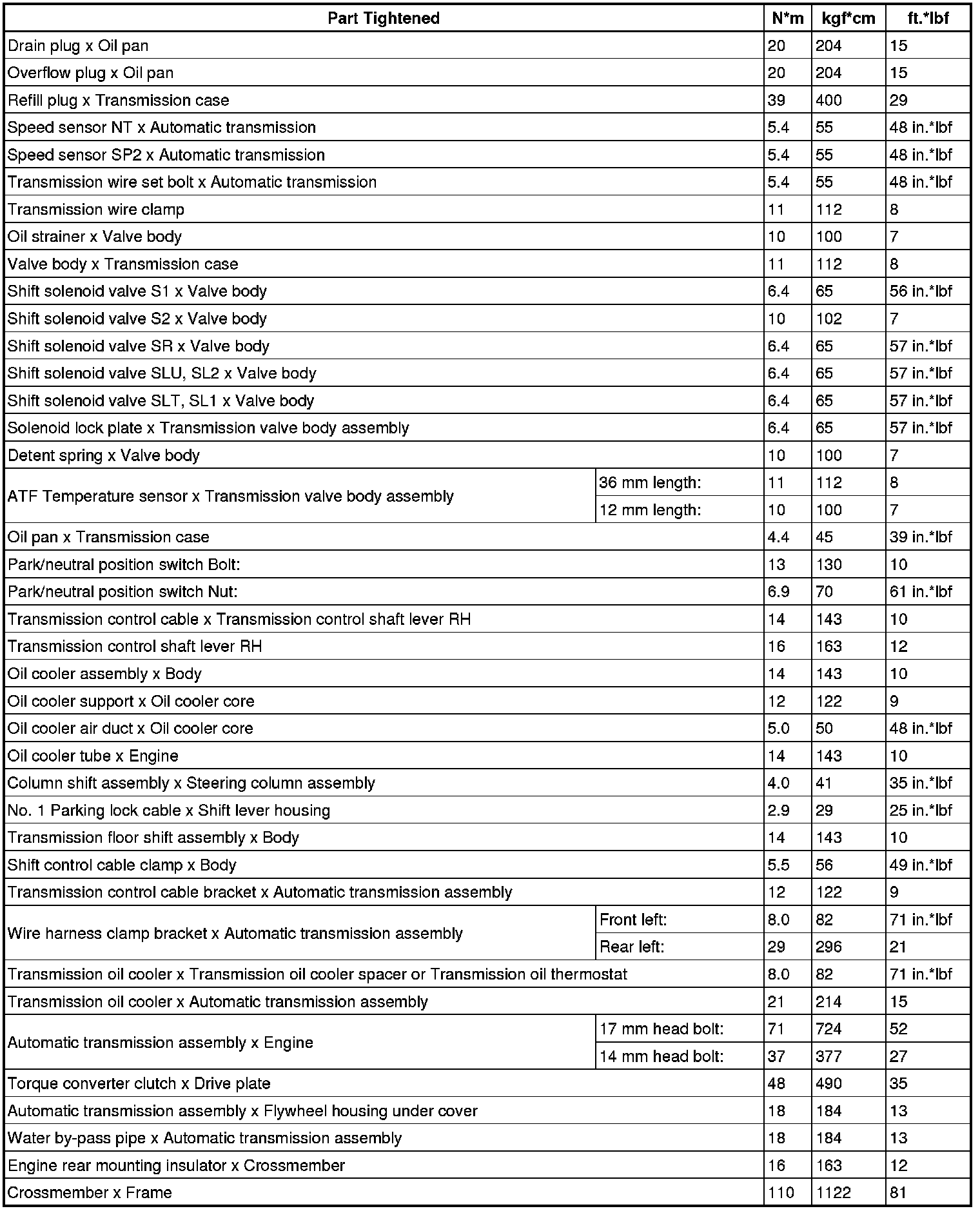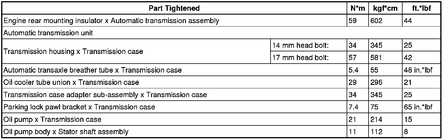 SERVICE SPECIFICATIONS: A750F AUTOMATIC TRANSMISSION: