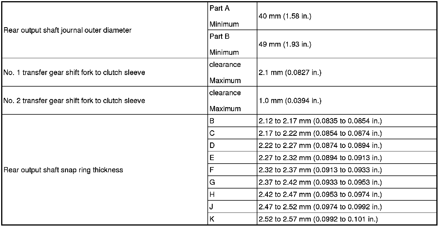 SERVICE SPECIFICATIONS: JF1A TRANSFER: SERVICE DATA