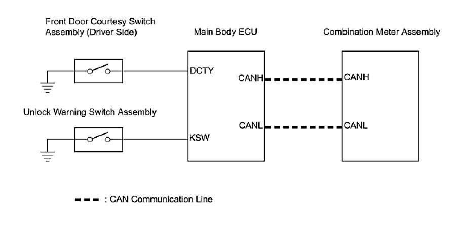 HINT: Since the key reminder warning system has functions that use CAN communication, firstly confirm that there is no malfunction in the communication system by inspecting the CAN communication functions in accordance with How to Proceed with Troubleshooting. Then, conduct the following troubleshooting procedure.