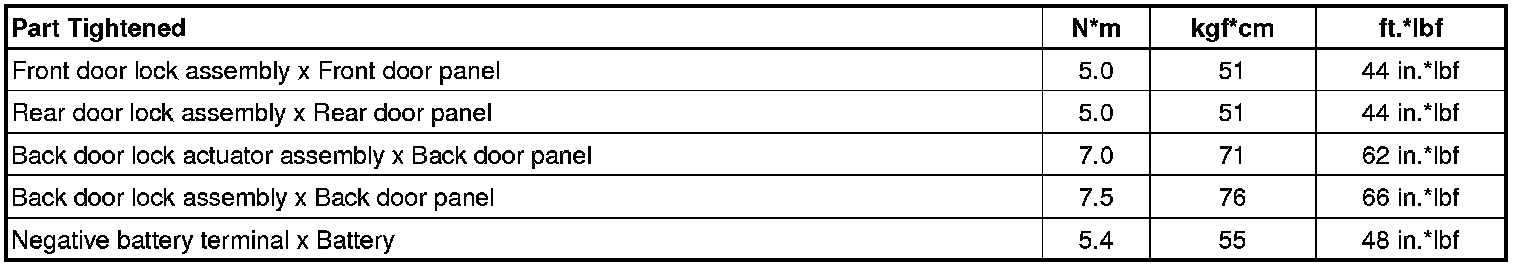 SERVICE SPECIFICATIONS: DOOR LOCK: