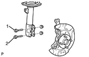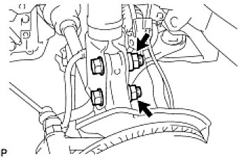 (c) Remove the 2 nuts on the lower side of the shock absorber.