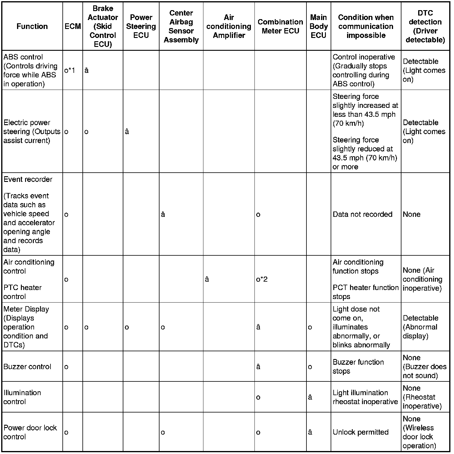 (b) Relationships between components and system functions and effects of communication failure on these functions. (For further details, see each system.)