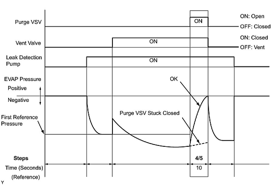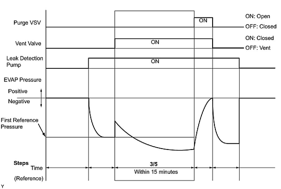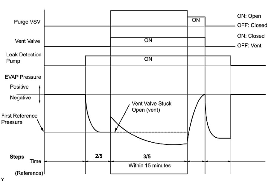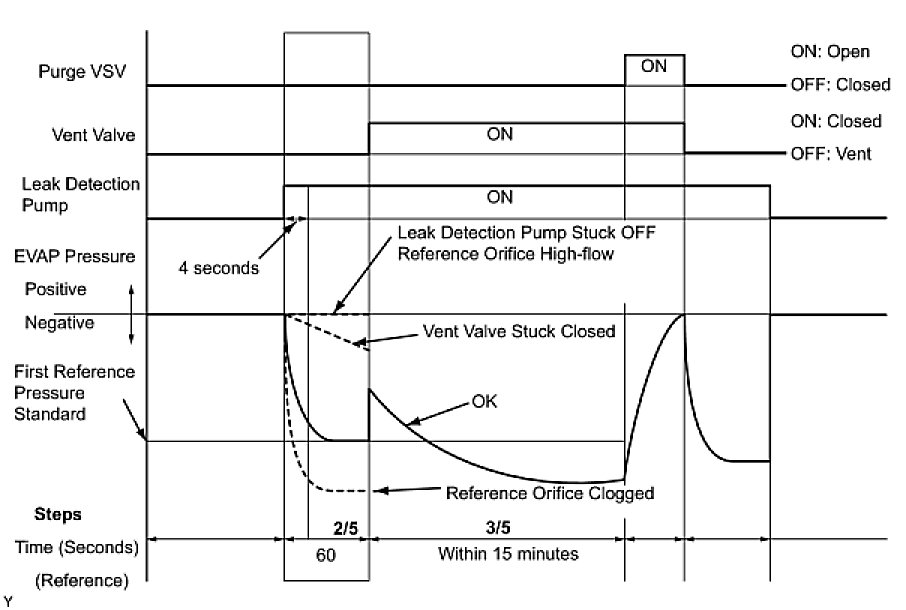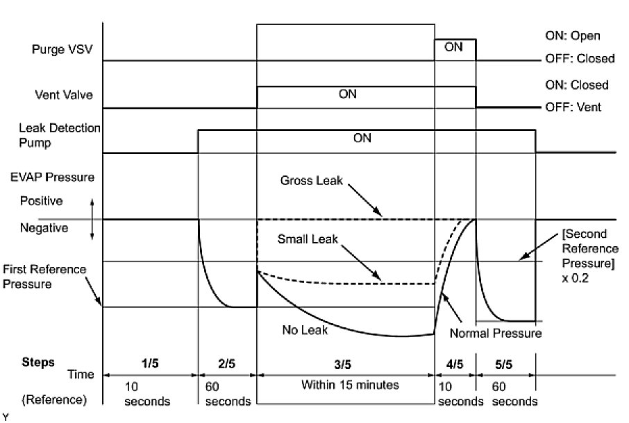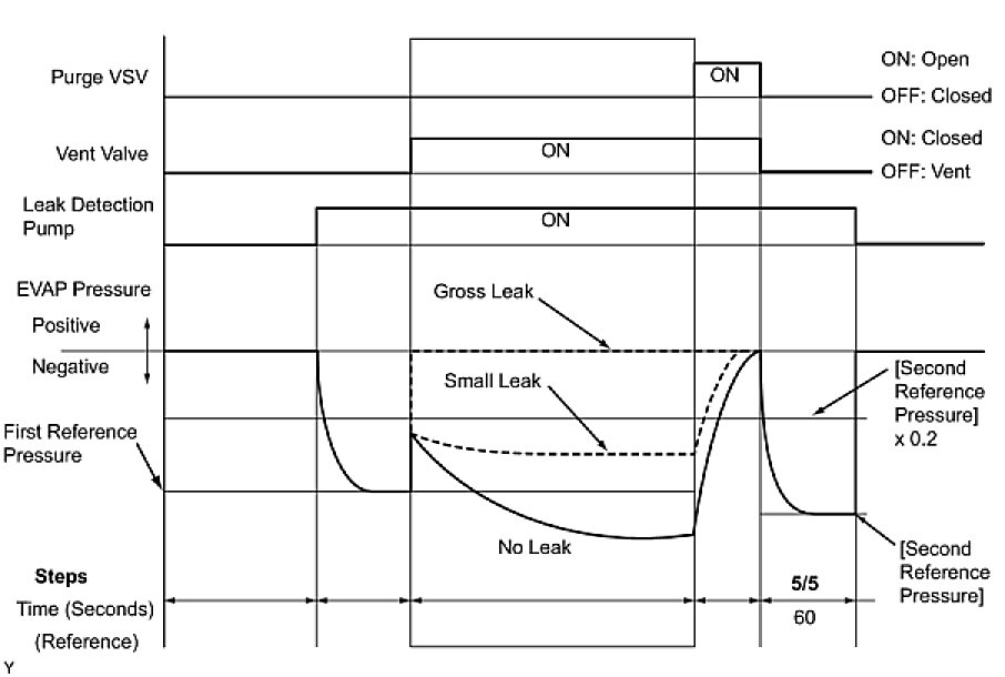 (b) Compare the EVAP pressure in step 3/5 and the second reference pressure (step 5/5).