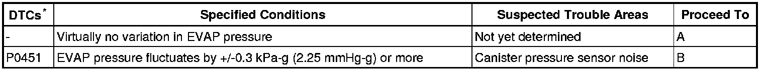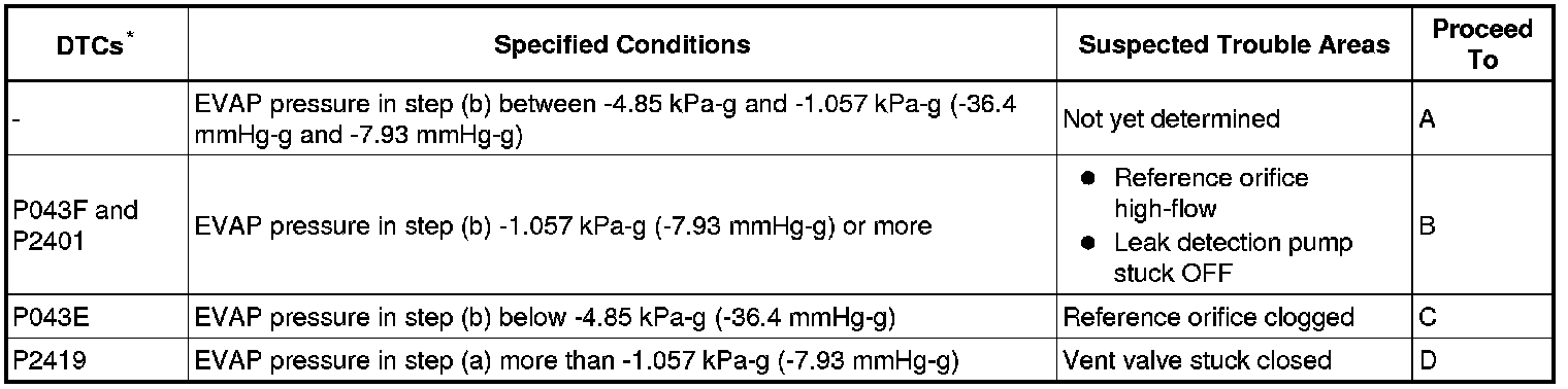 NOTE: If the reference pressure difference between the first and second checks is greater than the specification, all the DTCs relating to the reference pressure (P043E, P043F, P2401, P2402 and P2419) are stored.