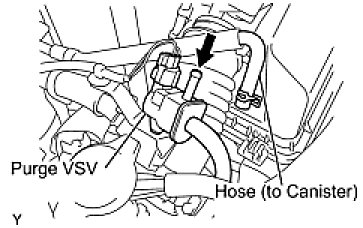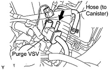 (c) Disconnect the hose (connected to the canister) from the purge VSV.