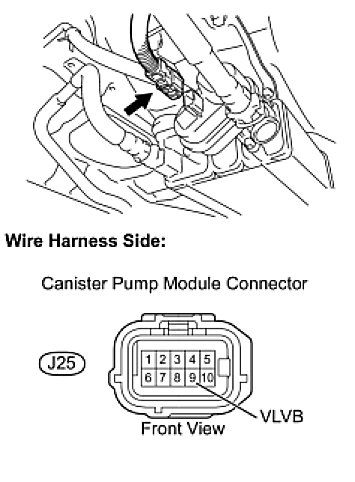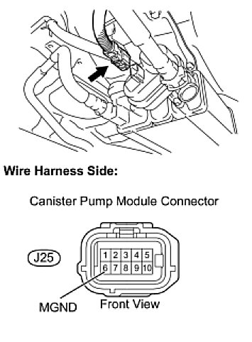 NOTE: When replacing the canister, check the canister pump module interior and related pipes for water, fuel and other liquids. If liquids are present, check for disconnections and/or cracks in the following: 1) the pipe from the air inlet port to the canister pump module; 2) the canister filter; and 3) the fuel tank vent hose.