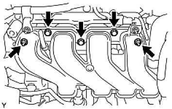 (b) Install the intake manifold with the 3 bolts and 2 nuts.