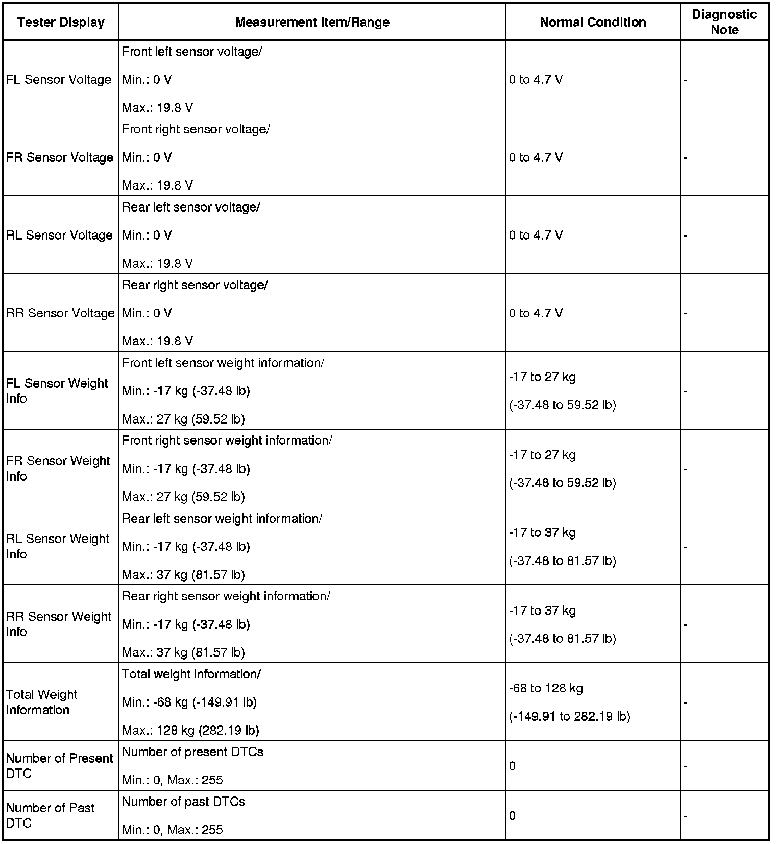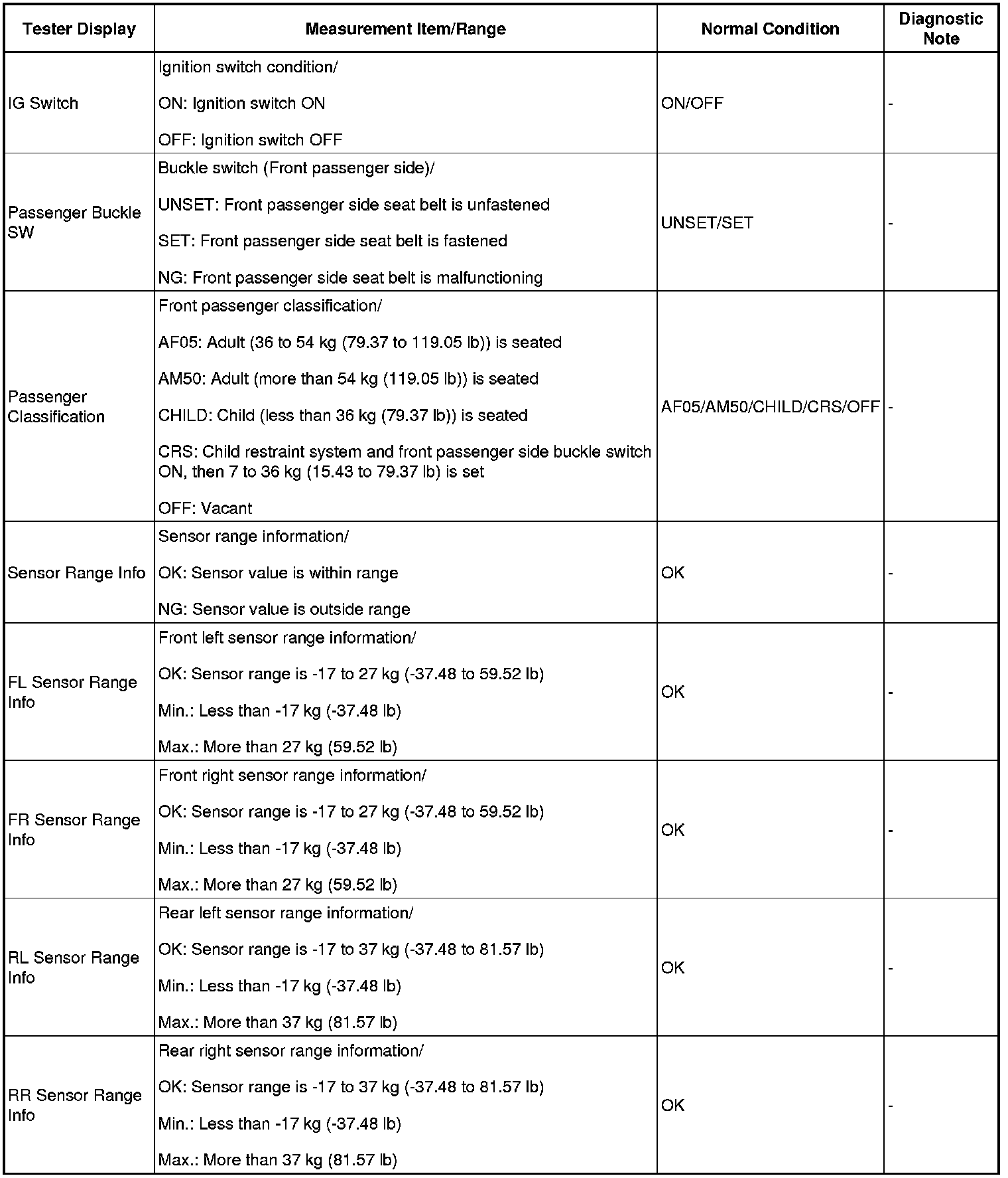 1. DATA LIST FOR OCCUPANT CLASSIFICATION ECU