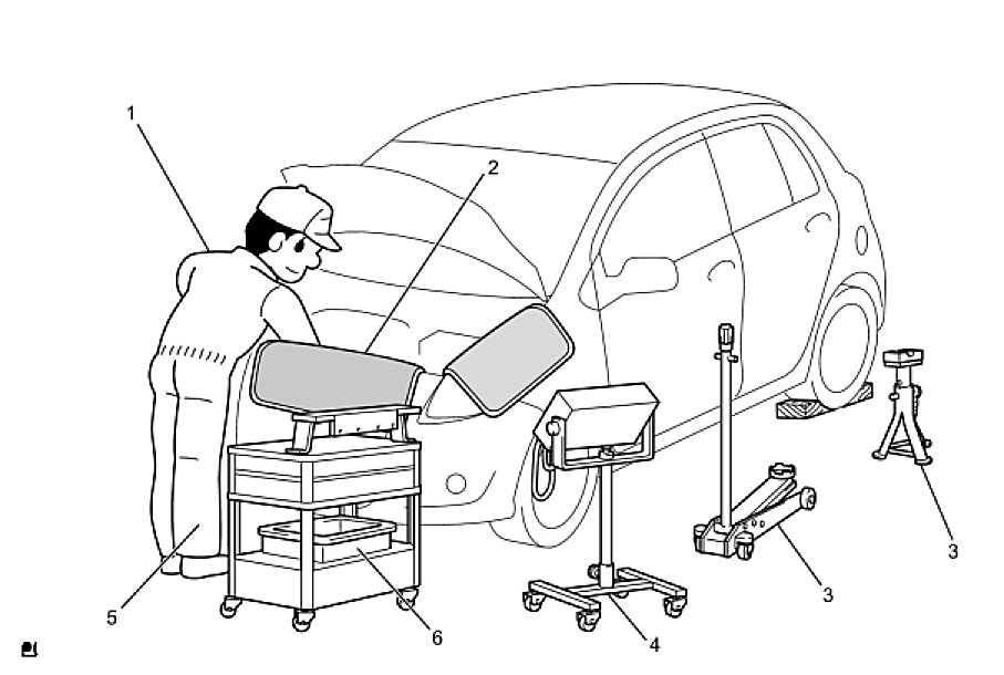 (1) Care must be taken when jacking up and supporting the vehicle. Be sure to lift and support the vehicle at the proper locations.