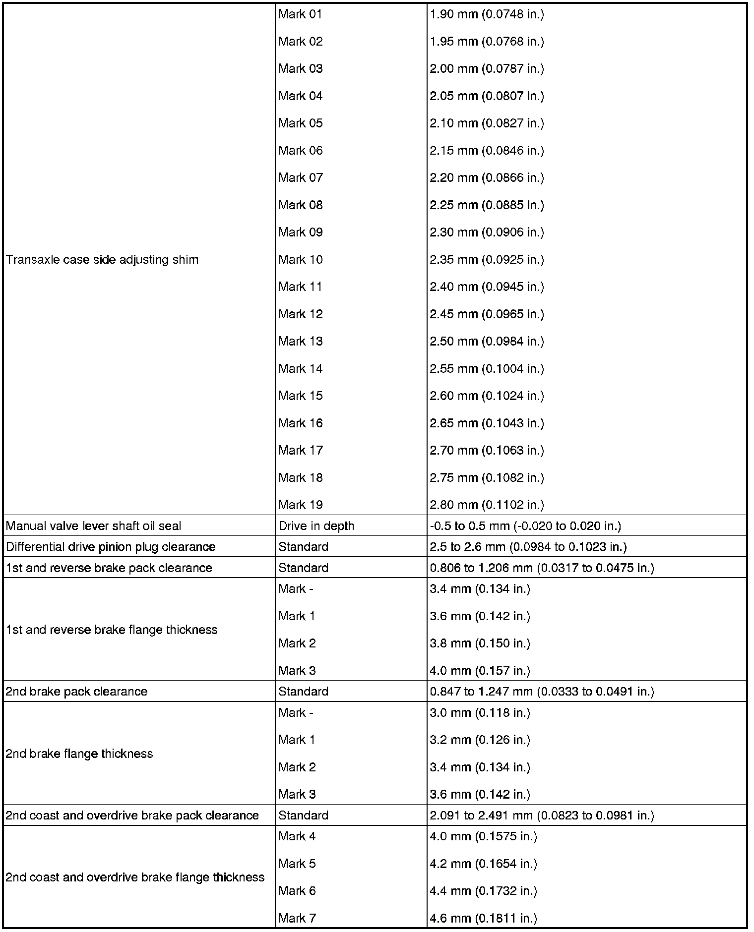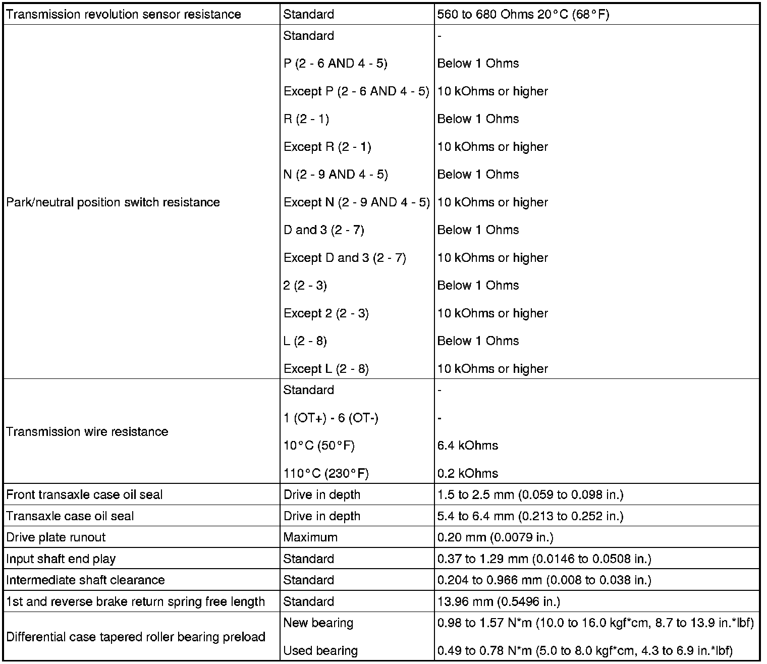 SERVICE SPECIFICATIONS: U340E AUTOMATIC TRANSAXLE: