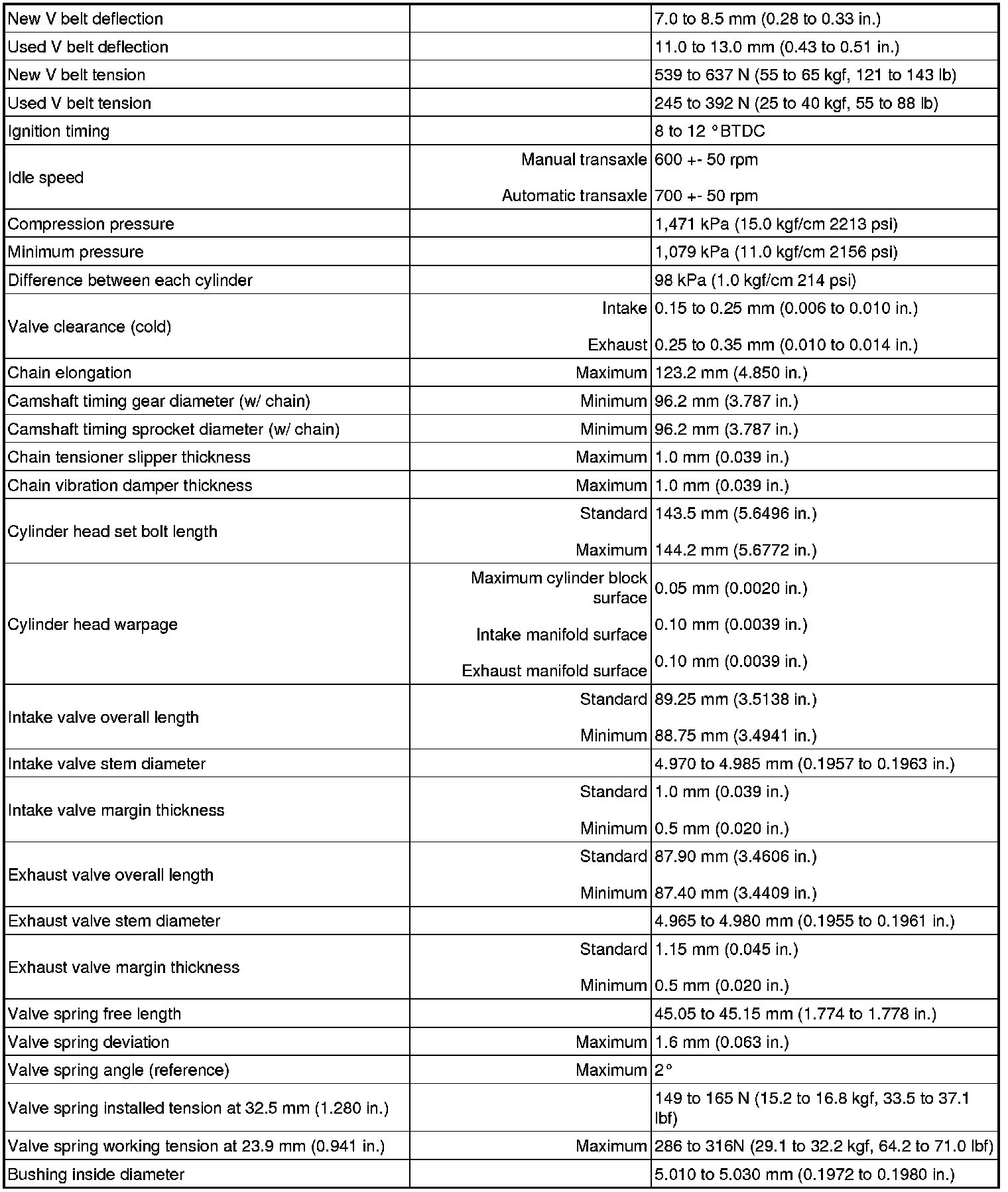 SERVICE SPECIFICATIONS: 1NZ-FE ENGINE MECHANICAL: