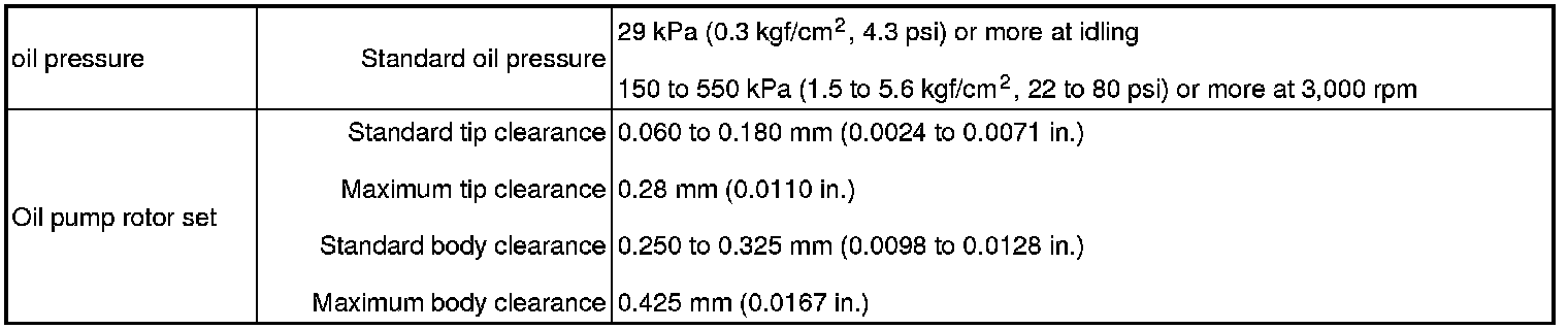 SERVICE SPECIFICATIONS: 1NZ-FE LUBRICATION: