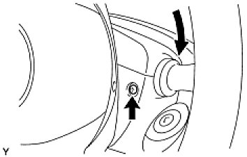 (b) Turn the steering wheel to the left and install the screw indicated in the illustration.