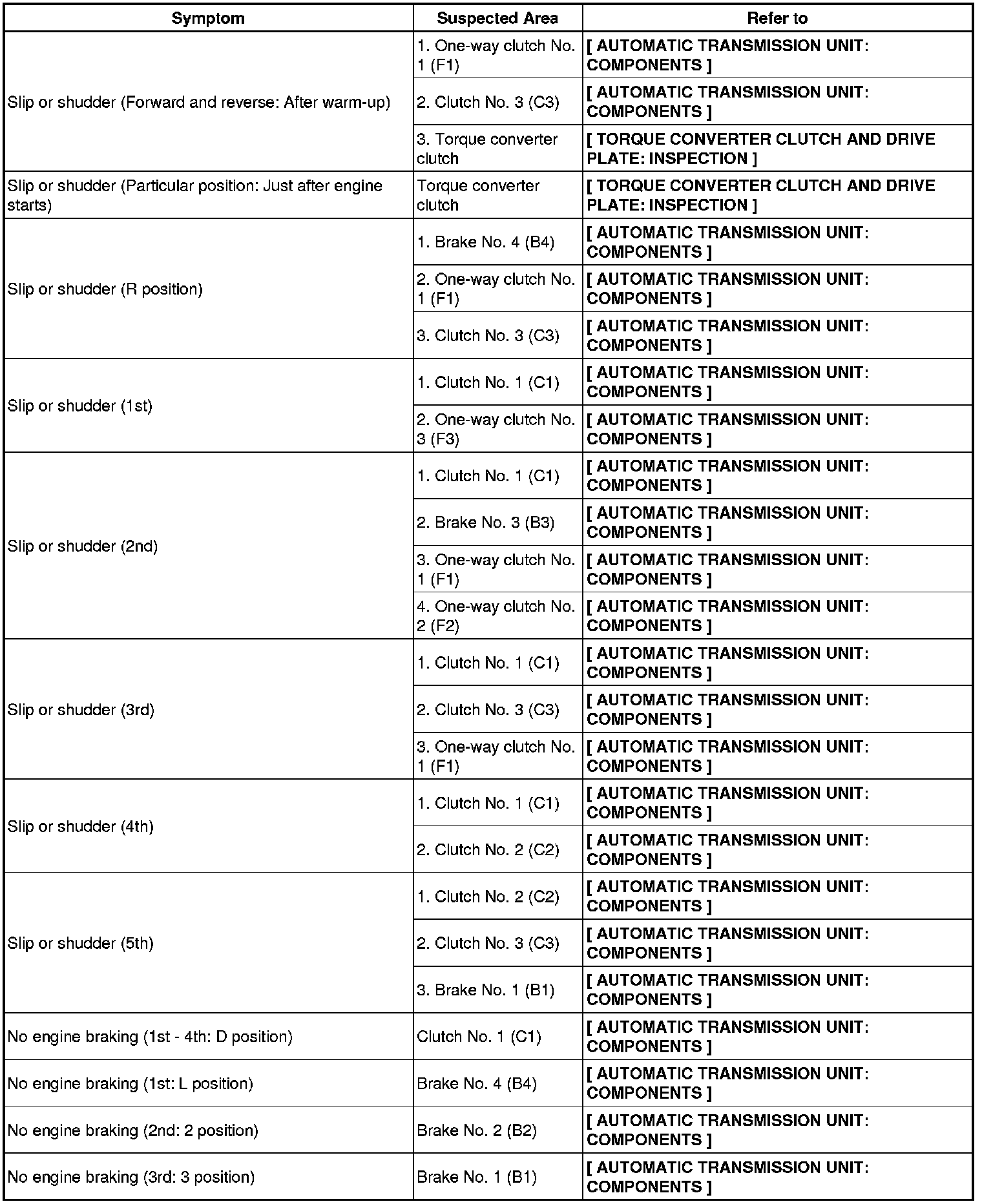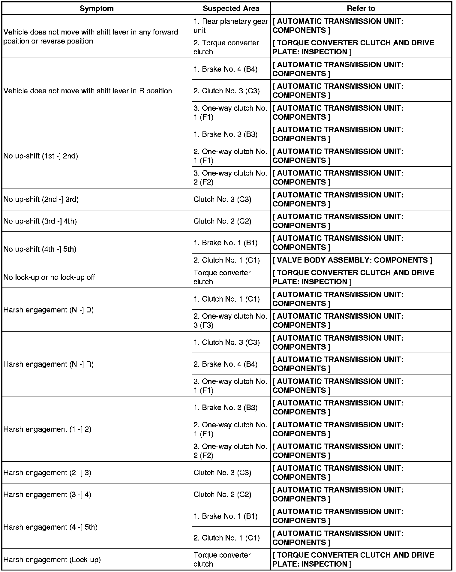 A750E AUTOMATIC TRANSMISSION: AUTOMATIC TRANSMISSION SYSTEM (for 1GR-FE): PROBLEM SYMPTOMS TABLE