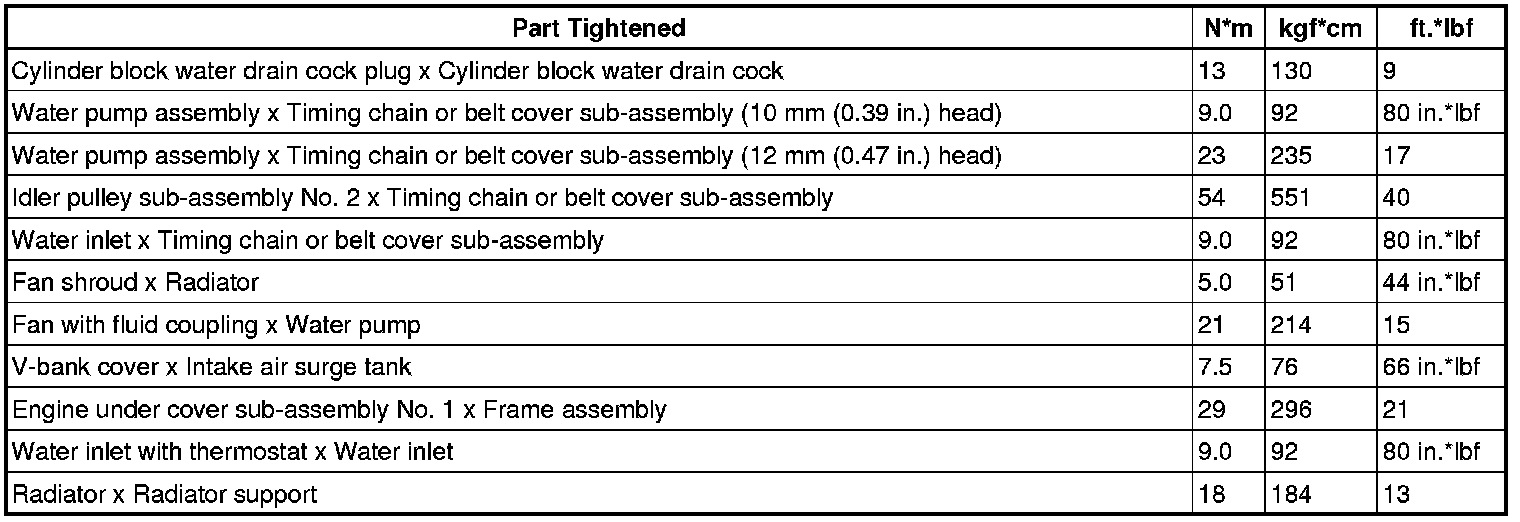 SERVICE SPECIFICATIONS: 1GR-FE COOLING: TORQUE SPECIFICATIONS