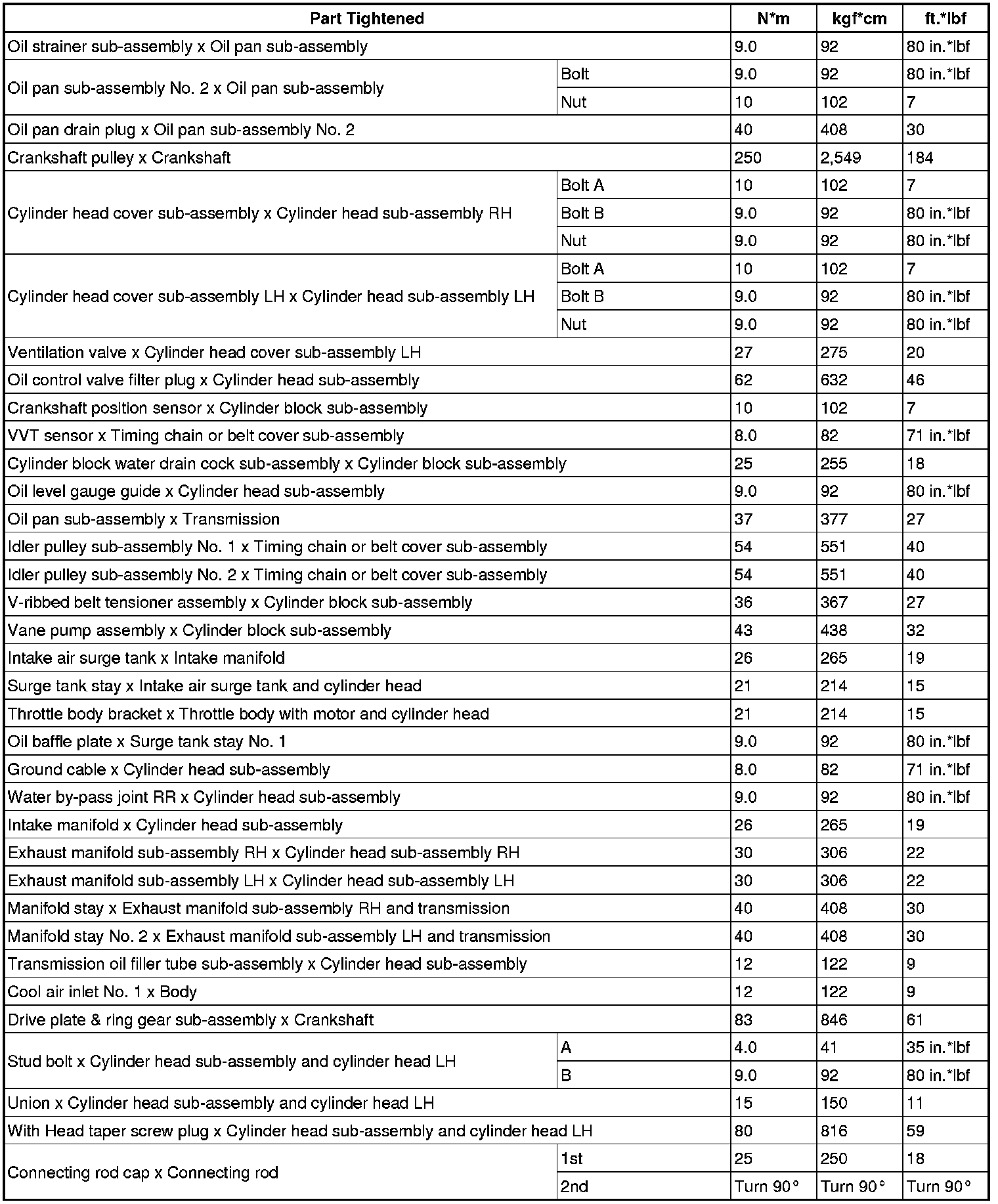 SERVICE SPECIFICATIONS: 1GR-FE ENGINE MECHANICAL: TORQUE SPECIFICATIONS